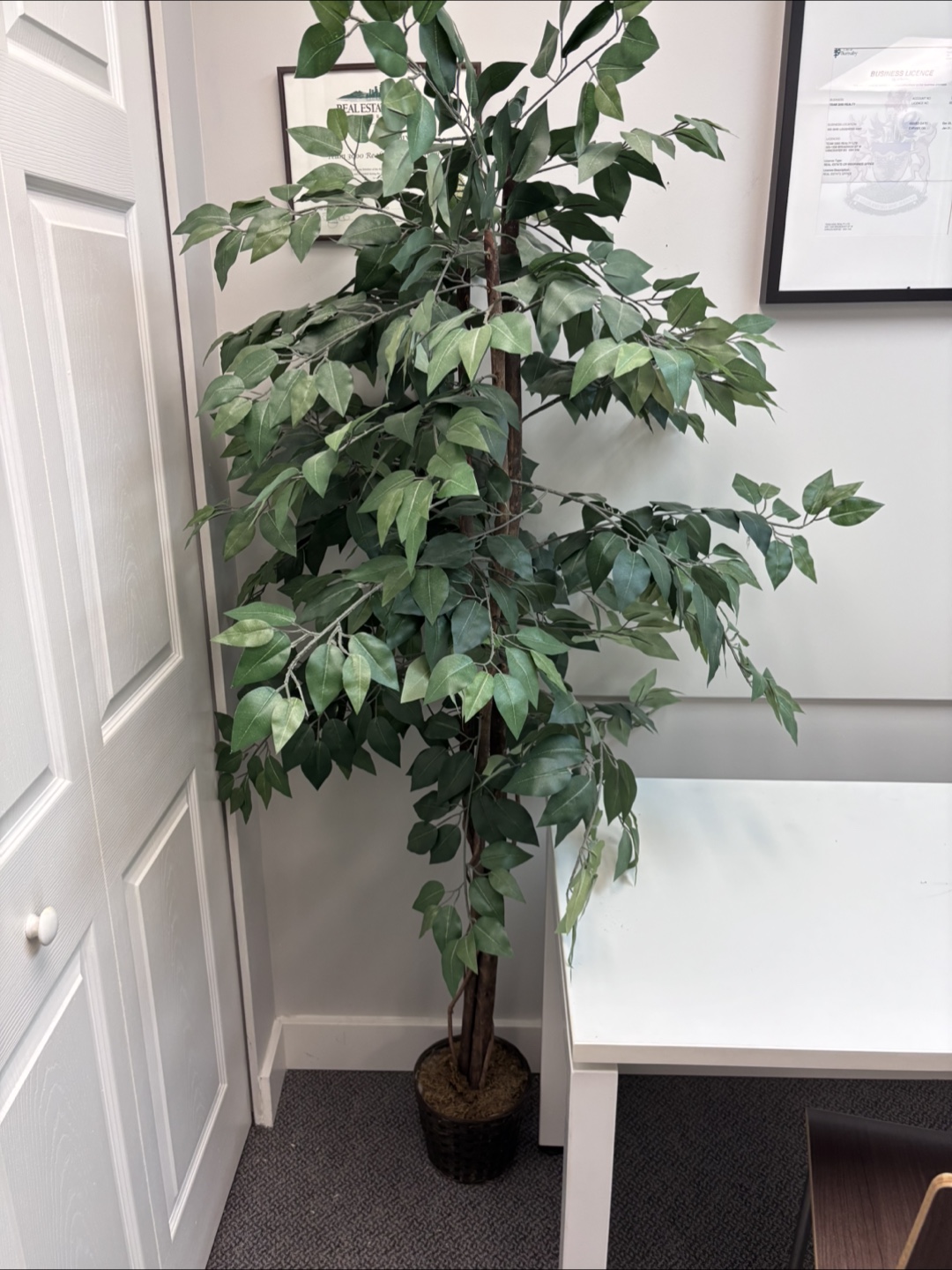Selling a faux ficus tree! It's in great condition and would look great in any room. It's a nice way to add some greenery to your space without the hassle of taking care of a real plant