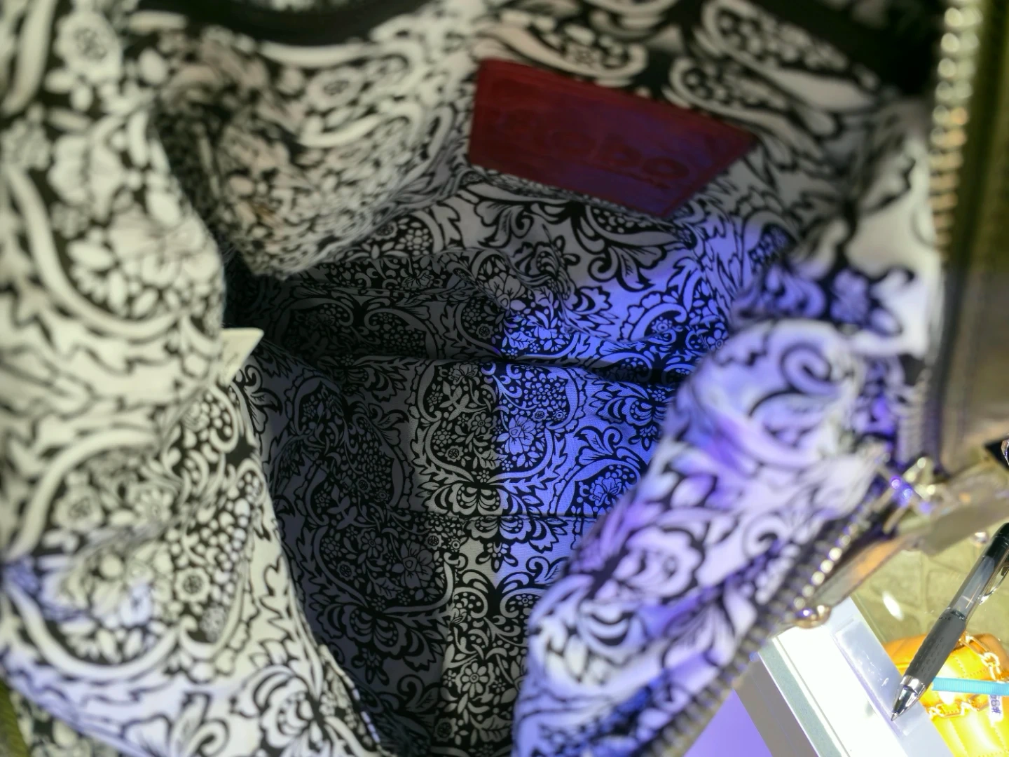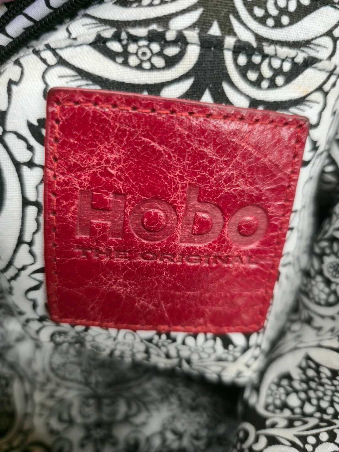 This is a Brand New Authentic Hobo The Original bag in olive green. It is made of leather and has a unique black and white patterned interior lining. It's a stylish and functional bag!