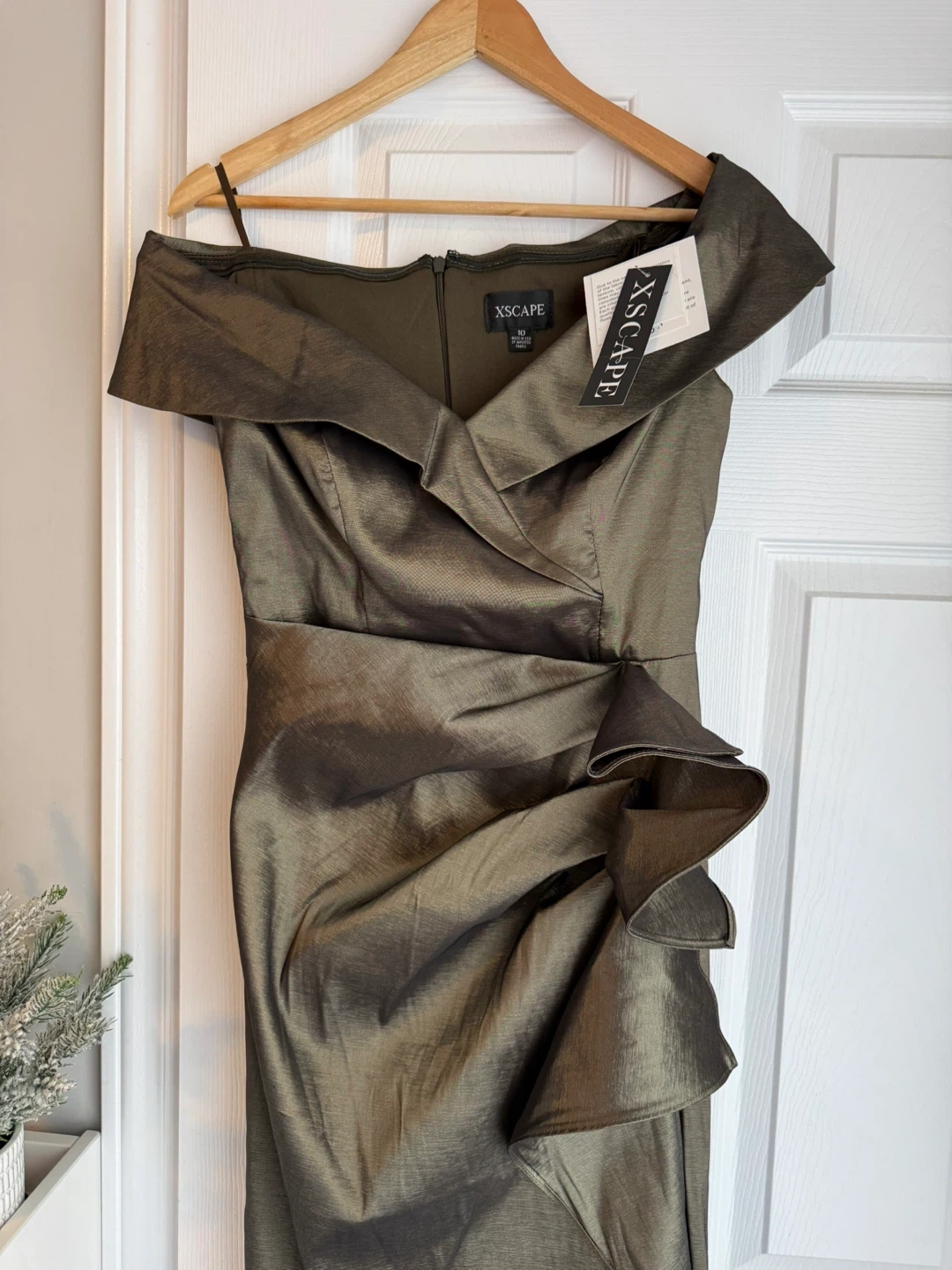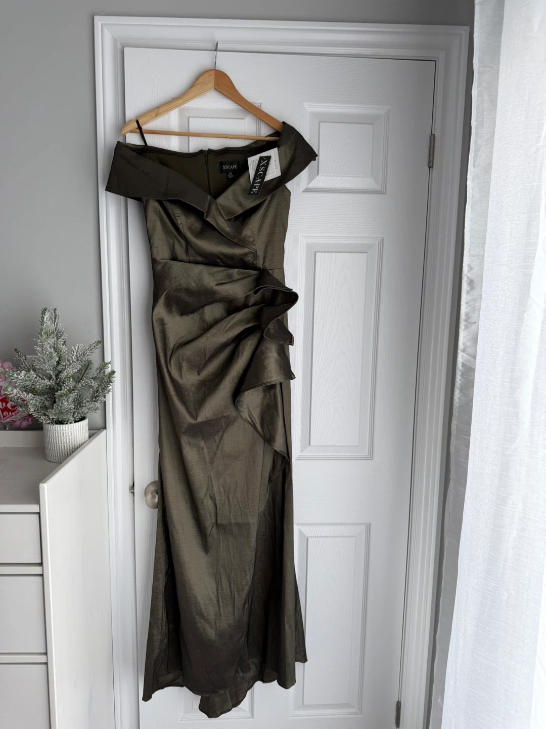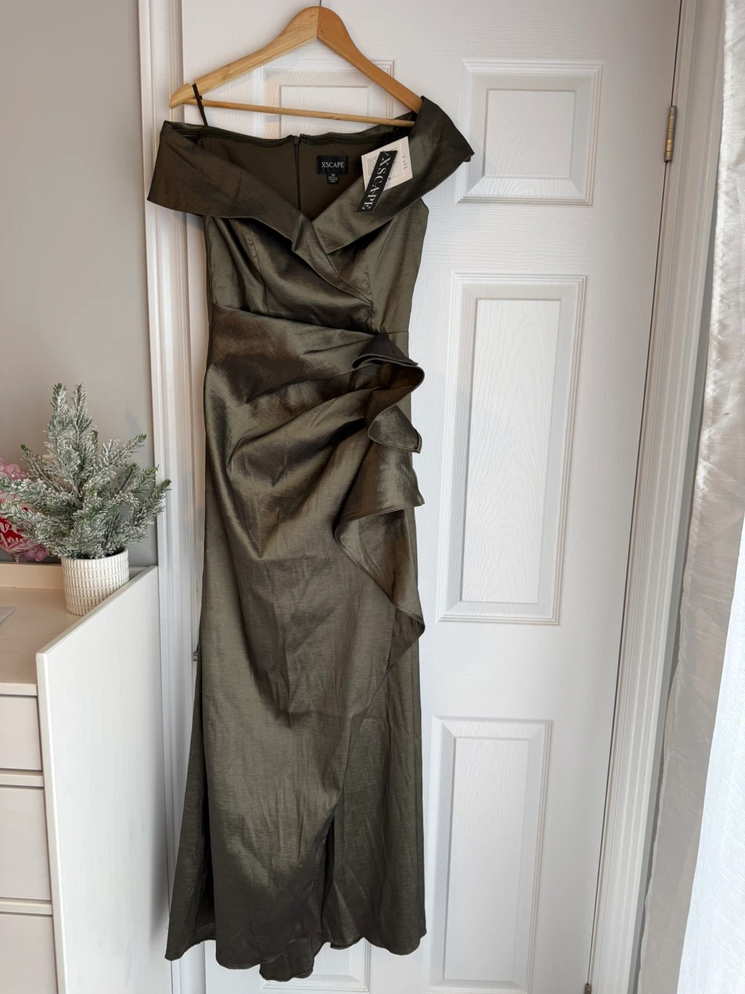 Selling a beautiful Xscape evening gown in a unique olive green colour! It's a size 10 and in great condition (brand new). Perfect for a special occasion!