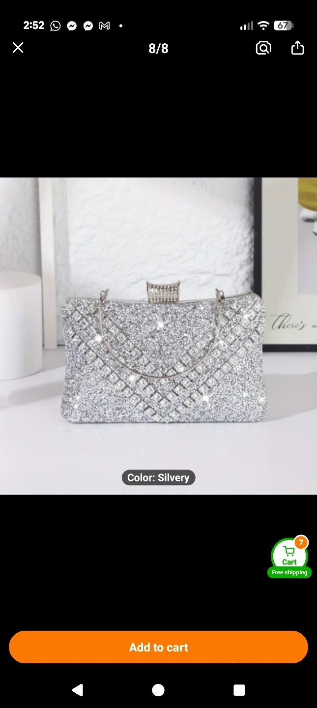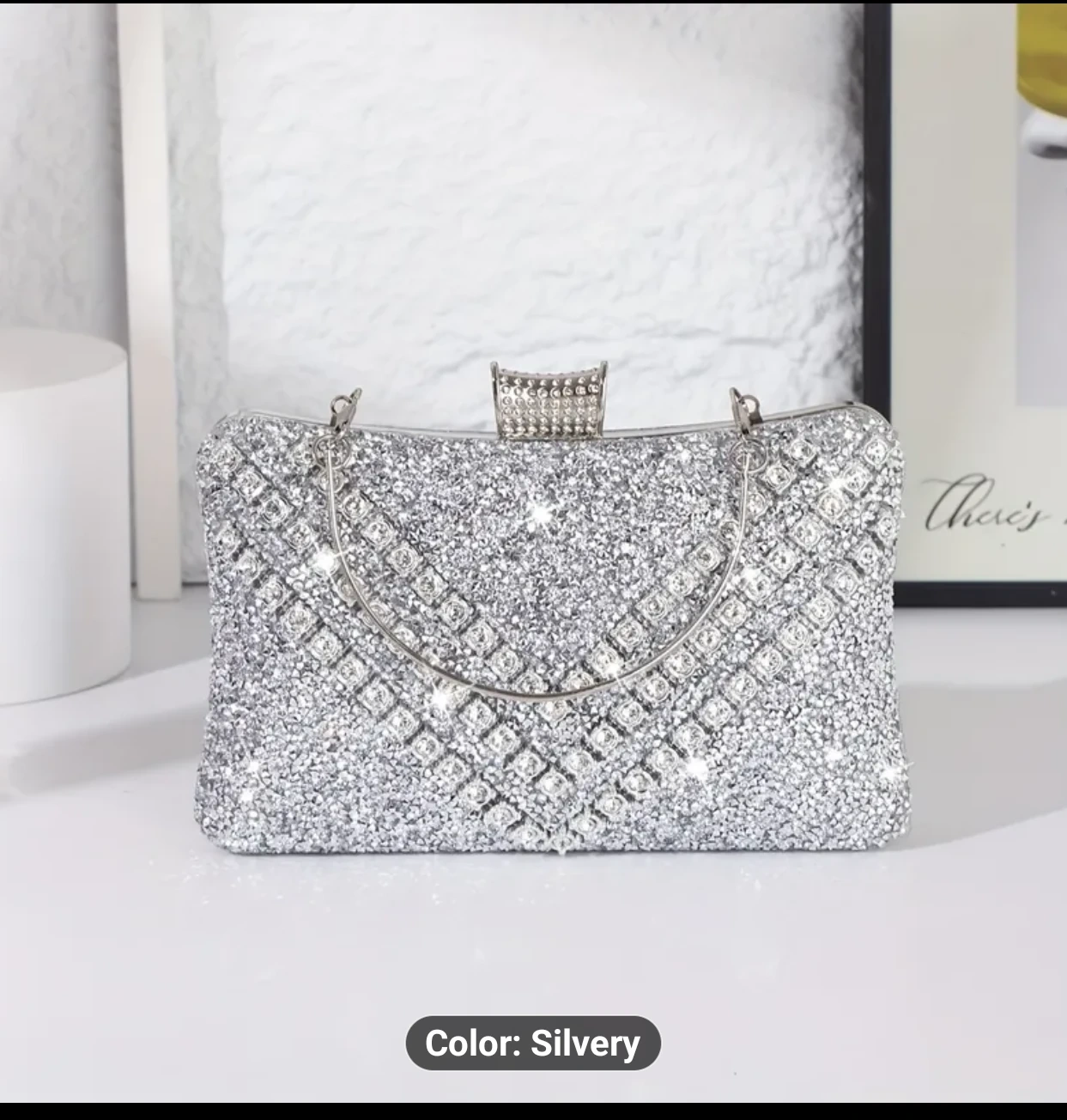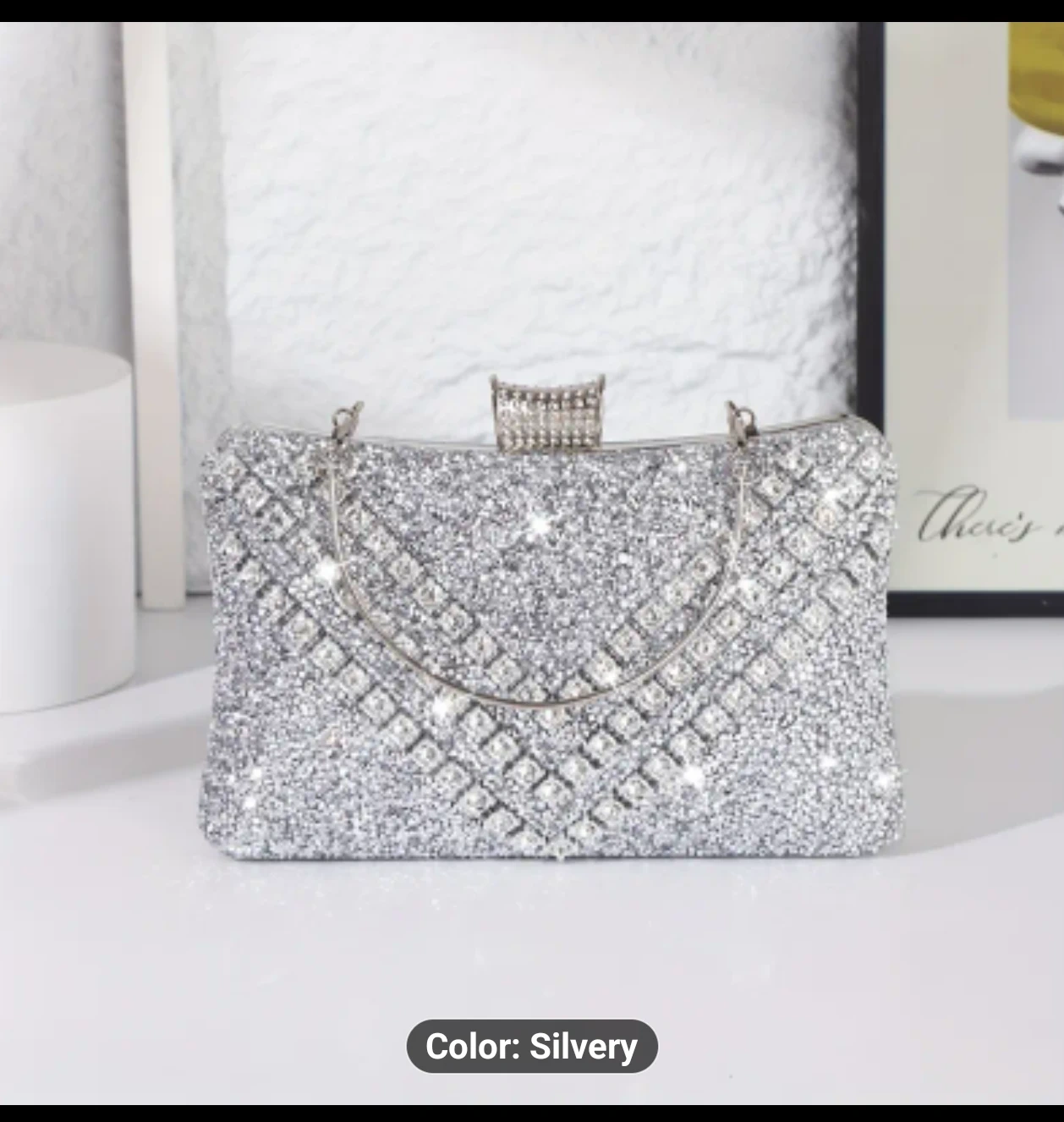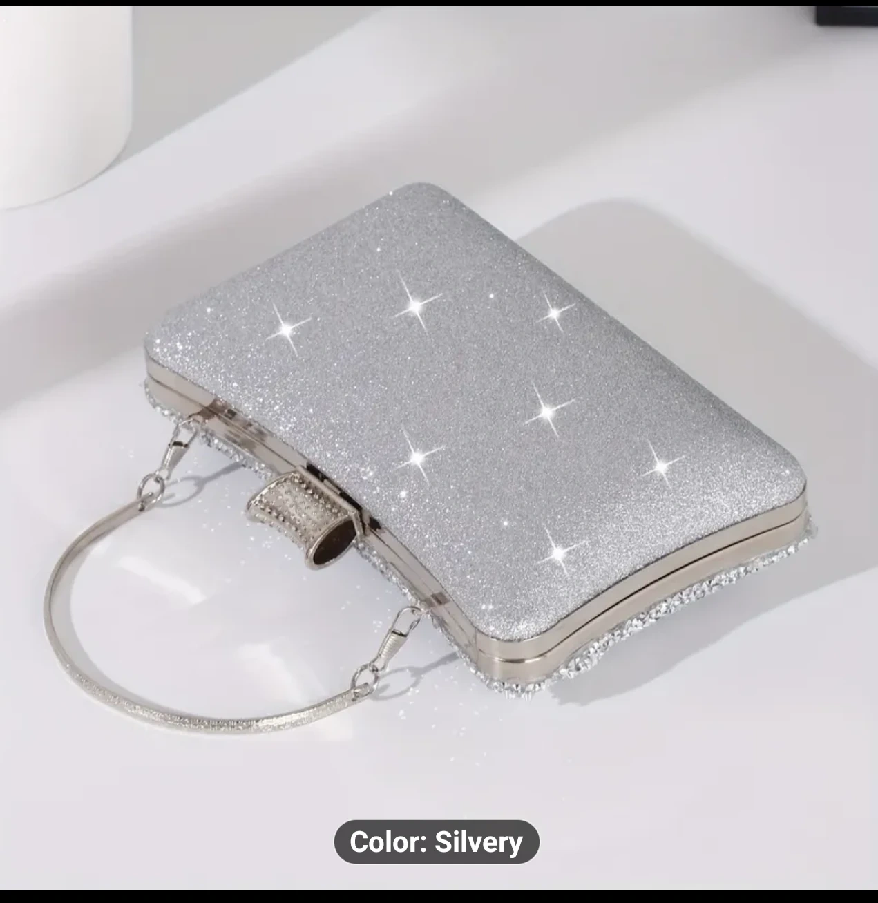 Selling a beautiful silver evening clutch! This sparkly purse is the perfect accessory for a night out or special occasion. It has a handle and a chain.