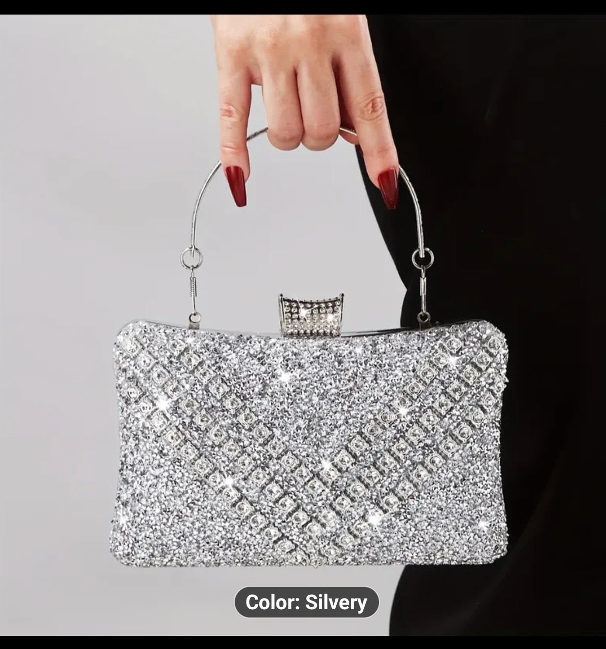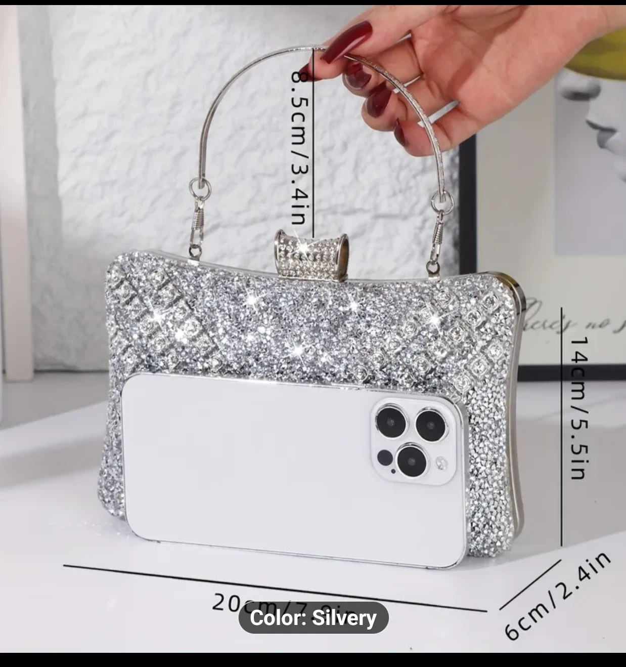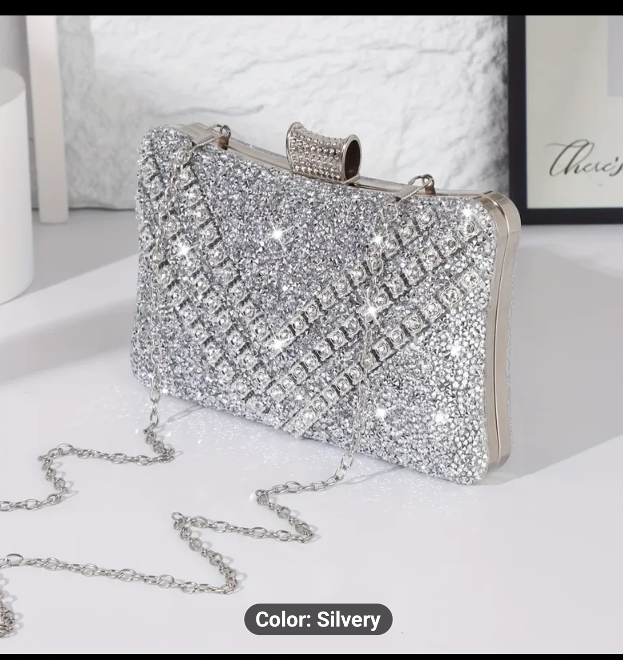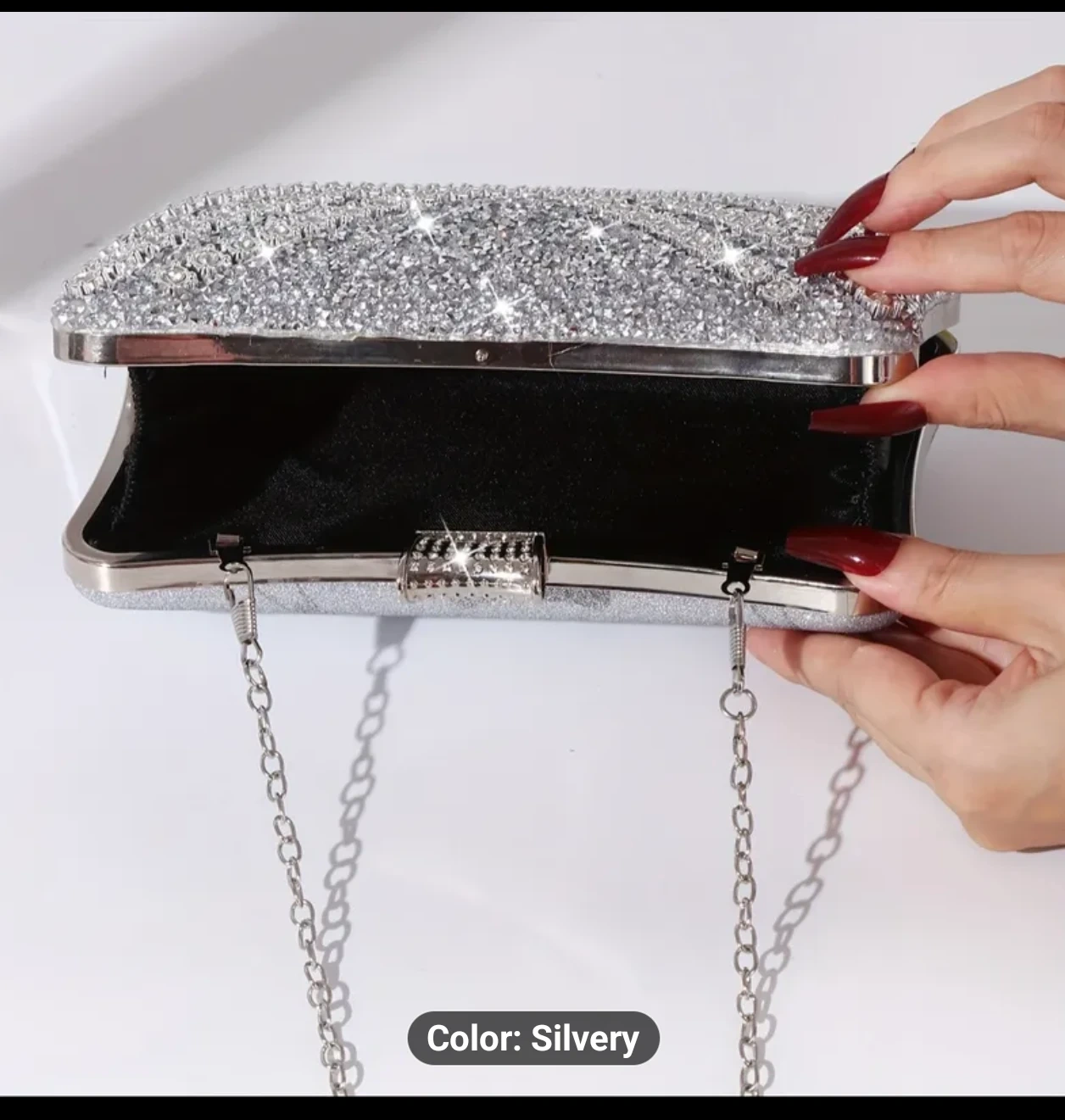 Selling a beautiful silver evening clutch! This sparkly purse is the perfect accessory for a night out or special occasion. It has a handle and a chain.