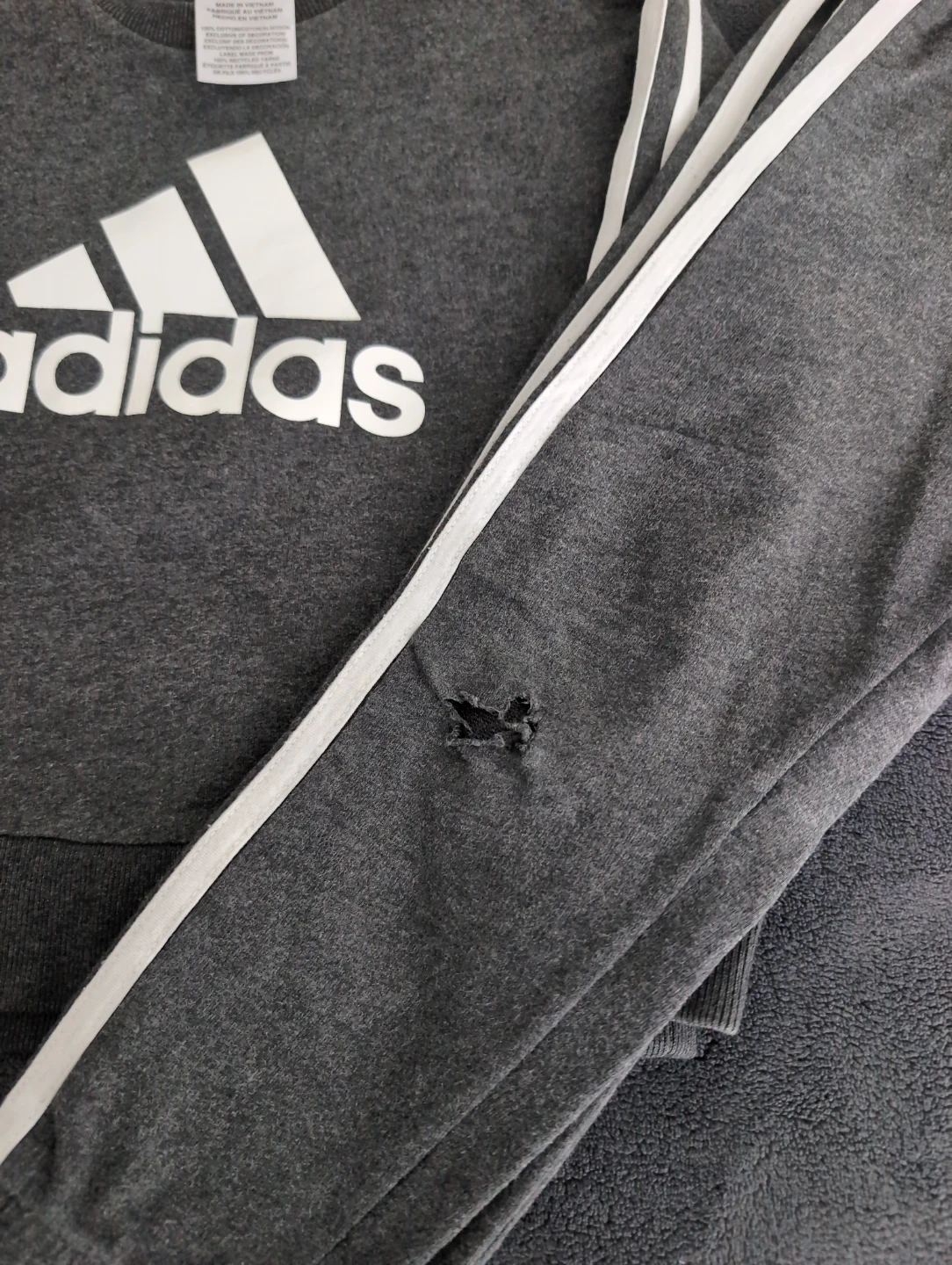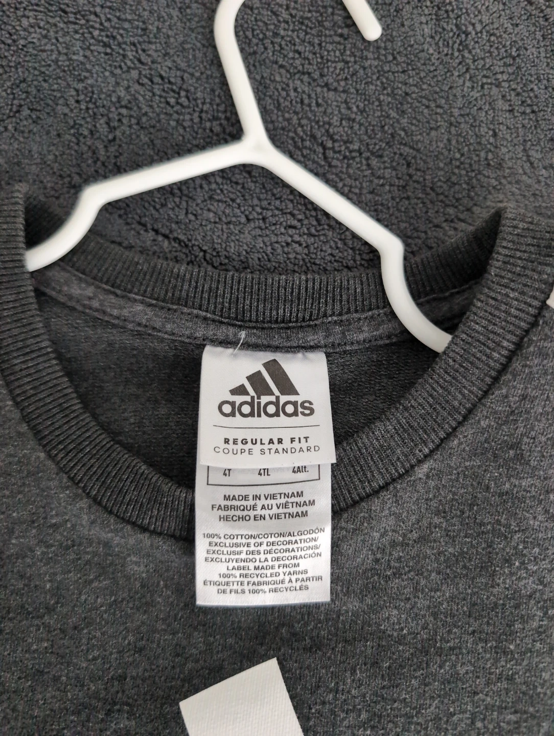 Selling a cute Adidas tracksuit for kids in size 4T. It's a grey colour with the classic Adidas stripes. Please note there is a small tear on right knee. .