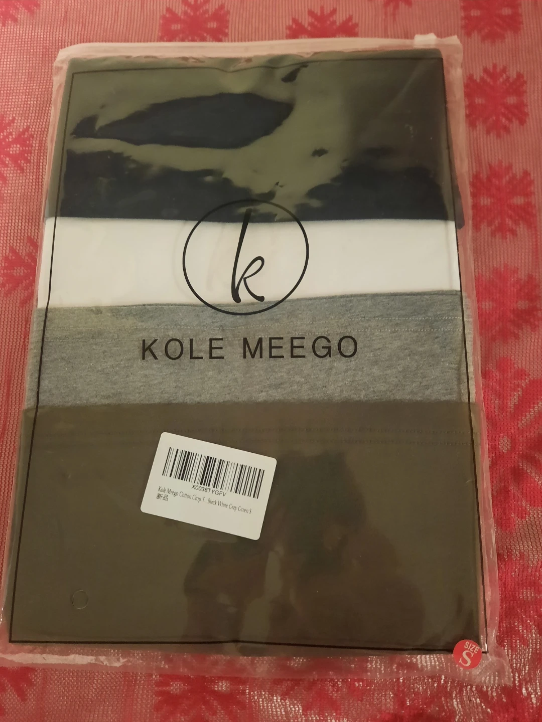 Selling a brand new KOLE MEEGO cotton crop top in size small. It comes in a pack with black, white, grey, and green colours. Perfect for everyday wear! 4 PACK