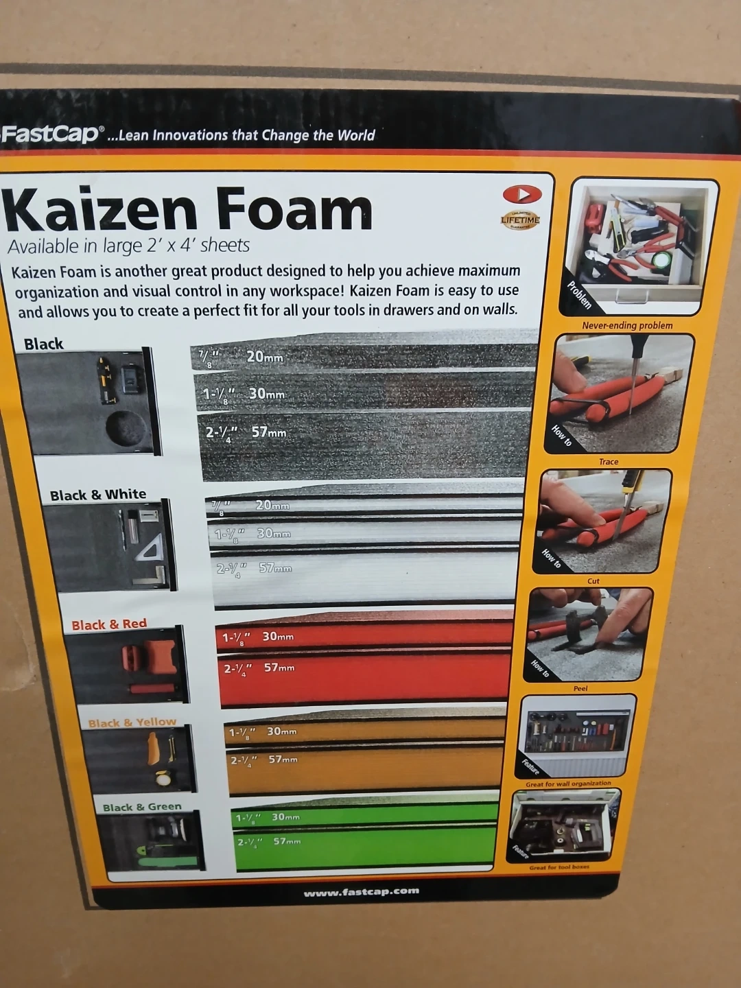 Selling a sheet of FastCap Kaizen Foam in black. It is available in a large 2' x 4' sheet. It's a great product designed to help you achieve maximum organization and visual control in any workspace. Kaizen Foam is easy to use and allows you to create a perfect fit for all your tools in drawers and on walls