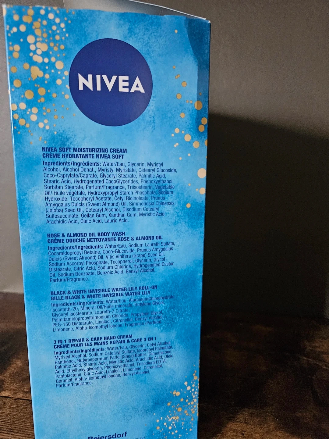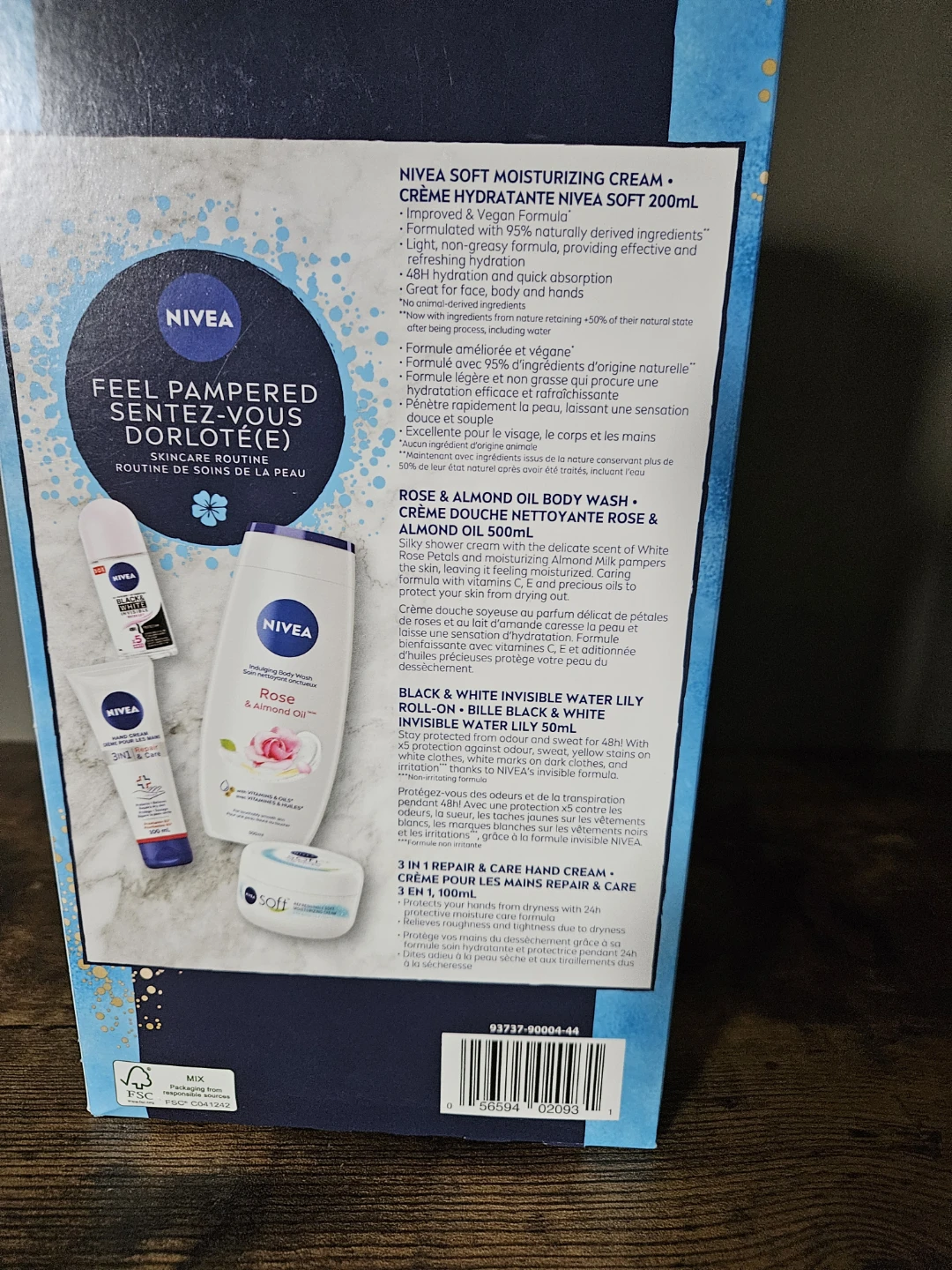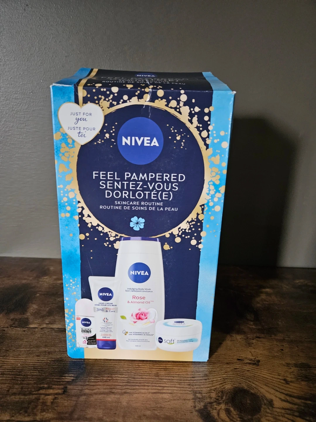 Selling a Nivea Feel Pampered Sentez-Vous Dorlote(E) skincare routine set. It comes with: