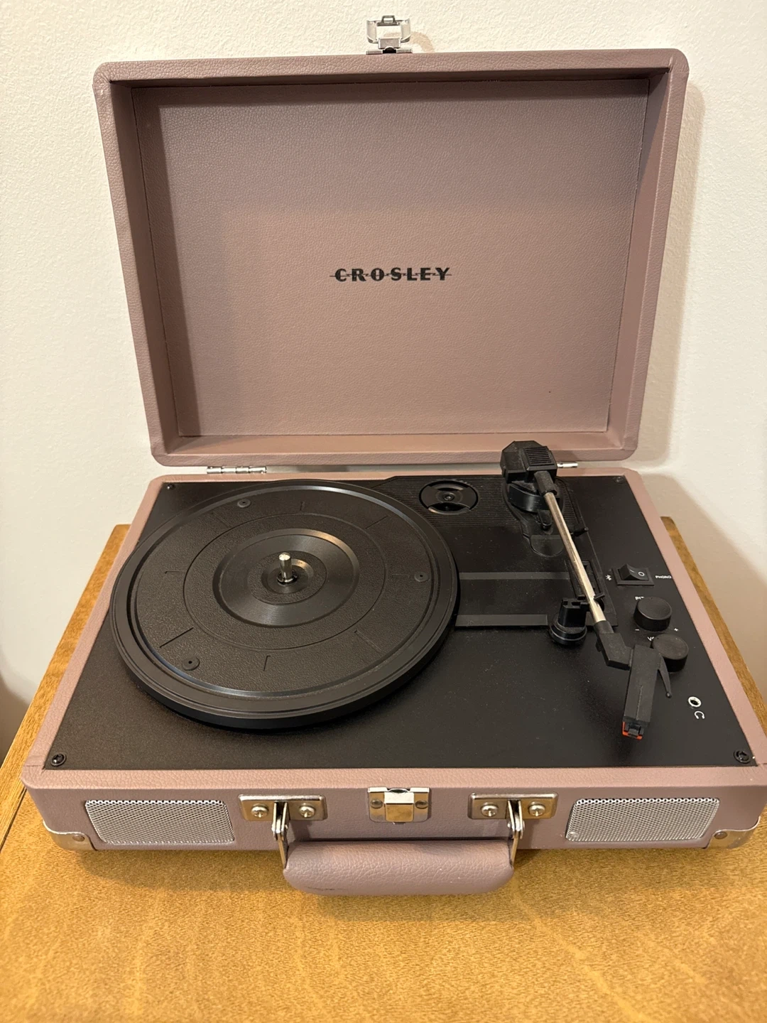 Crosley Cruiser Turntable - Mauve Selling a Crosley Cruiser turntable record player in a mauve color! It's in great condition and comes with its charger. It's lightweight and portable, perfect for enjoying your favorite vinyl records on the go! Table sold separately and available for sale now.