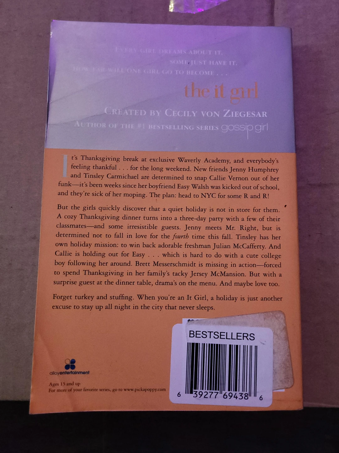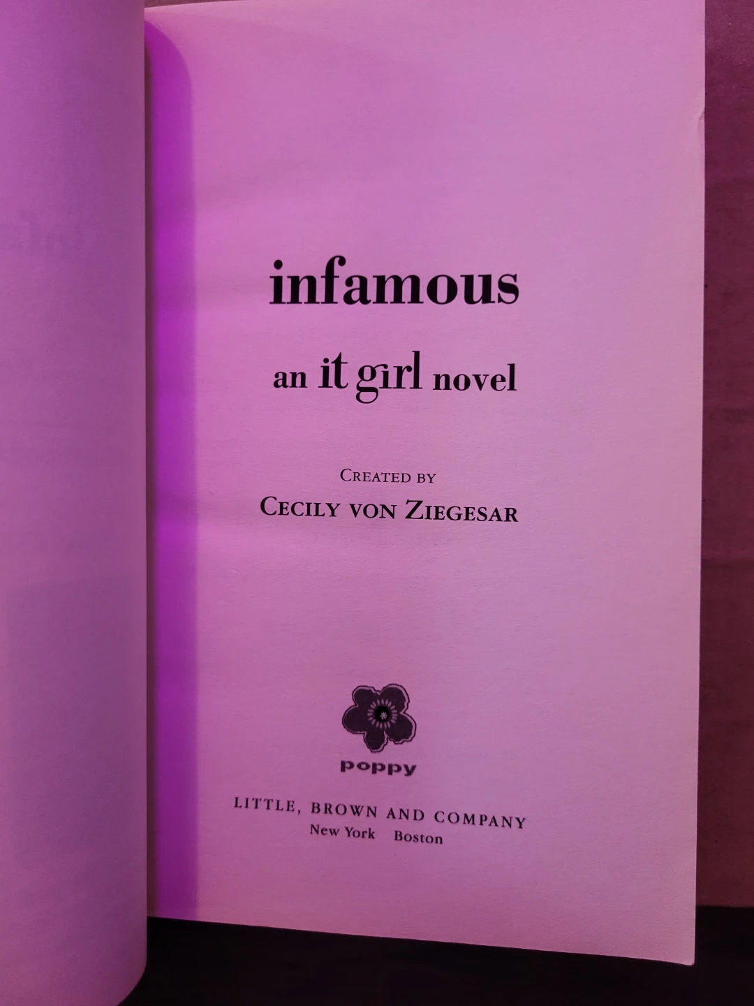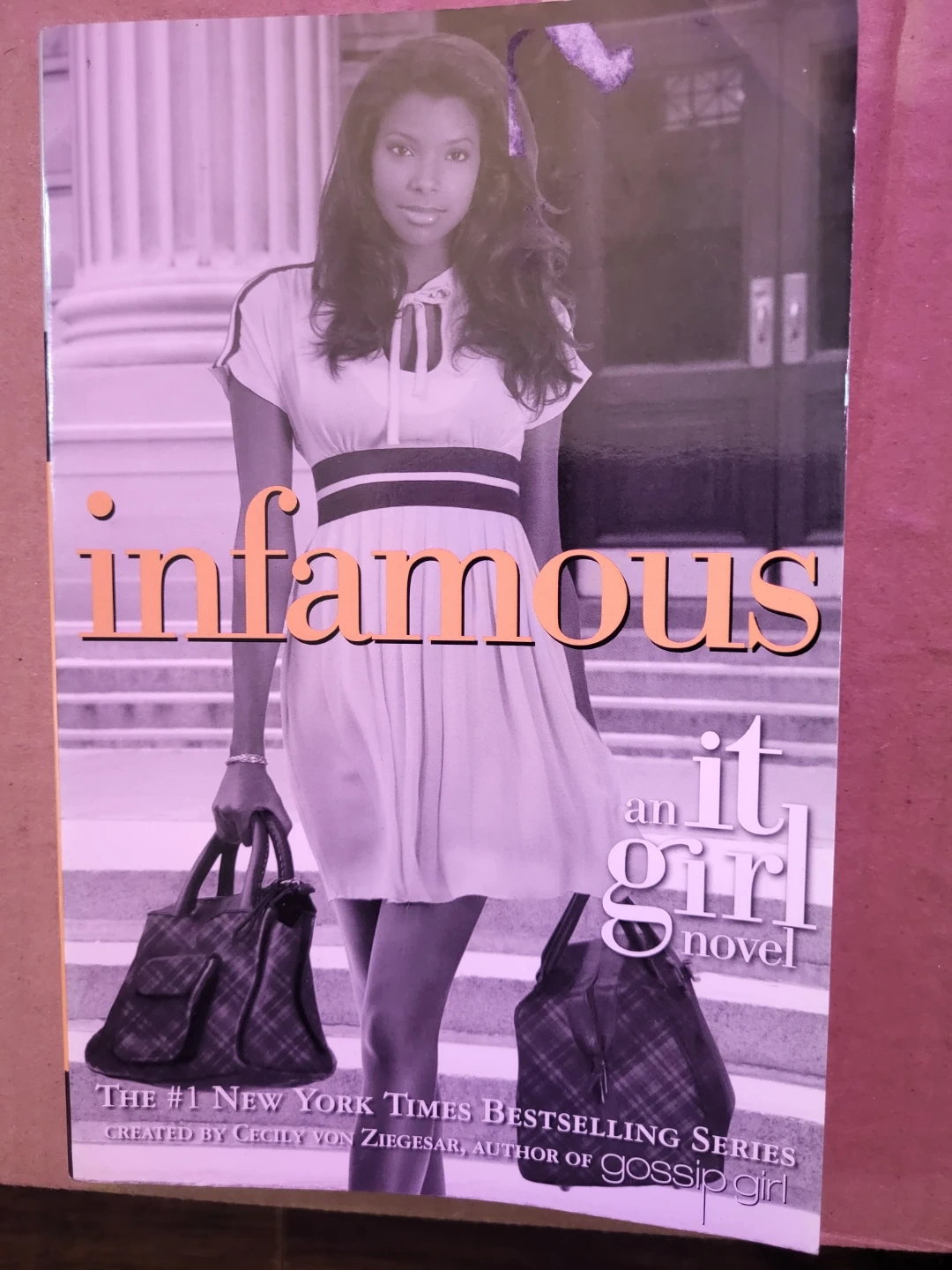 Selling the book 'Infamous' from the 'It Girl' novel series by Cecily von Ziegesar, the author of the Gossip Girl series. It's a fun and witty read, perfect for anyone who enjoys young adult novels