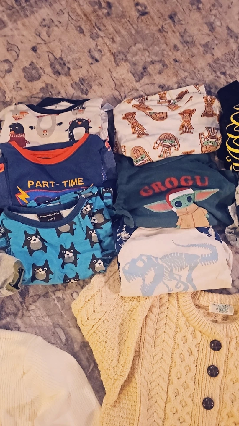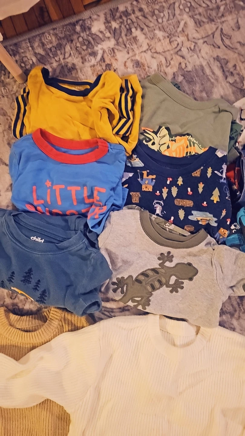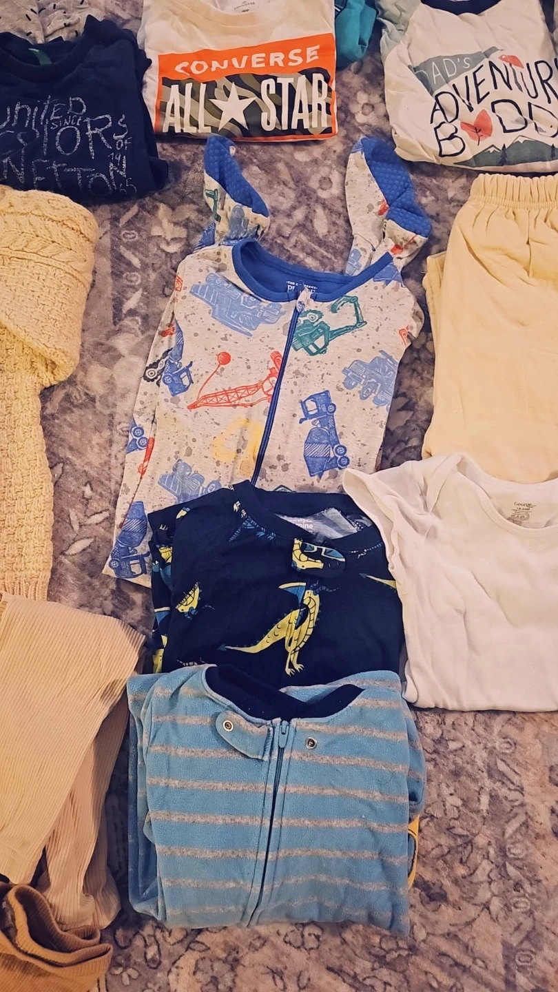 Selling a mixed bundle of 2t 3t toddler clothing! There's a variety of shirts, pants, and sleepers in different colours and patterns. All are in good used condition and ready for a new home!