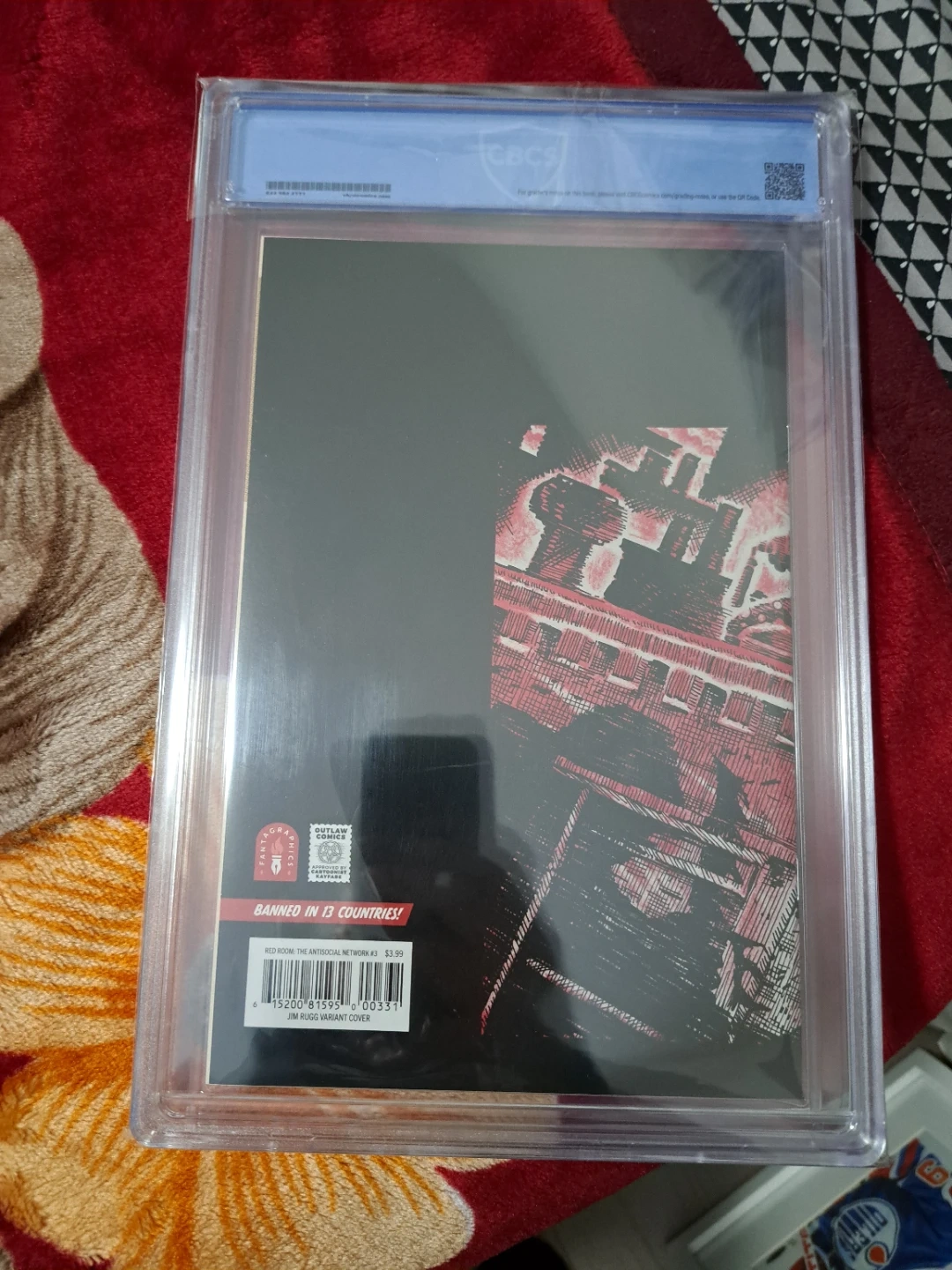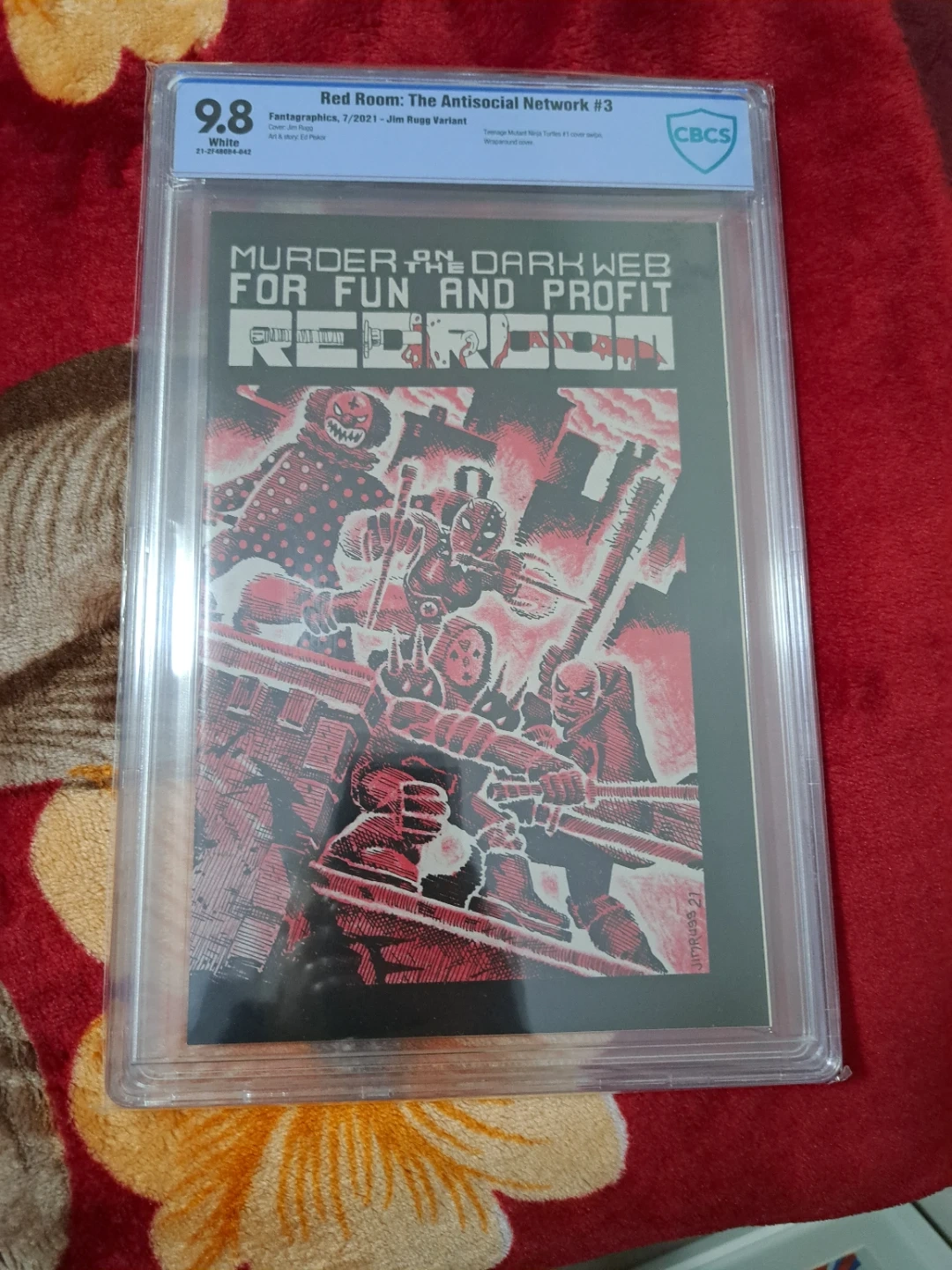 Selling a graded copy of Red Room: The Antisocial Network #3. It's graded 9.8 by CBCS. This is the Jim Rugg Variant cover from the series by Ed Piskor and Fantagraphics. The manufacturing date is July 2021.