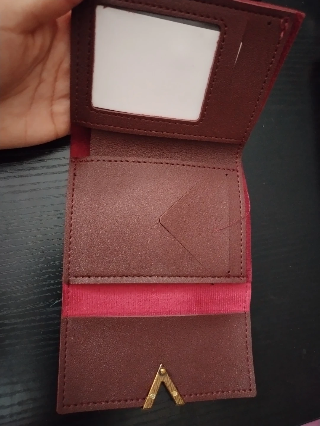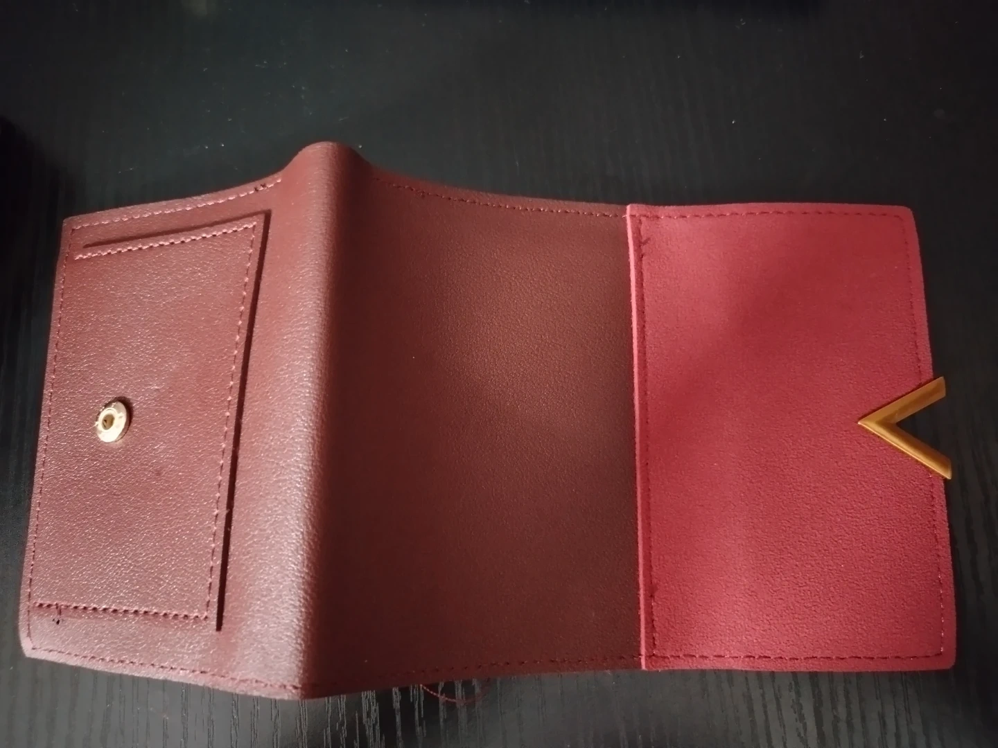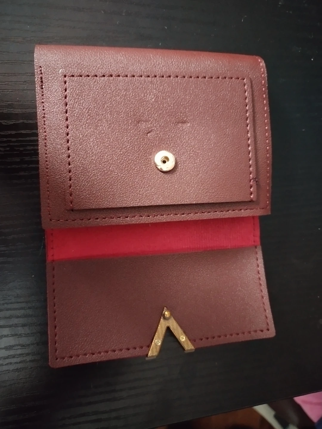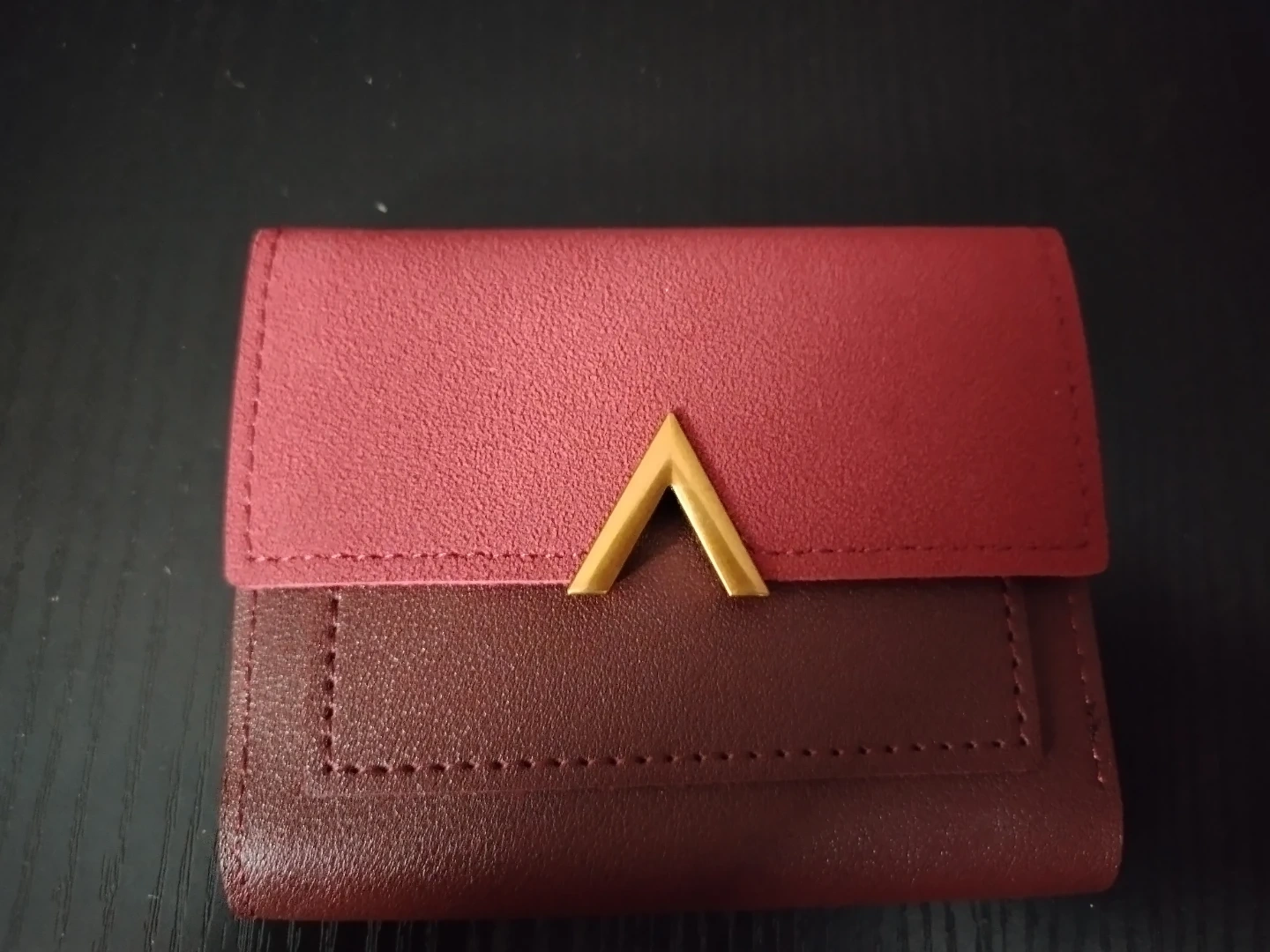 Selling a cute trifold wallet in burgundy and red! It has a gold accent and plenty of space for your cards and cash. It's in great condition and ready for a new owner