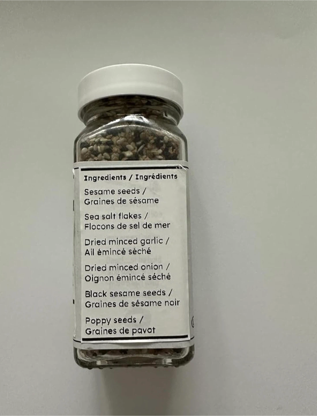 Selling a bottle of Trader Joe's Everything But the Bagel Sesame Seasoning Blend! It's a tasty mix with sea salt, garlic, and onion. Perfect for adding flavour to your meals. Net weight is 2.3 oz (65g)
