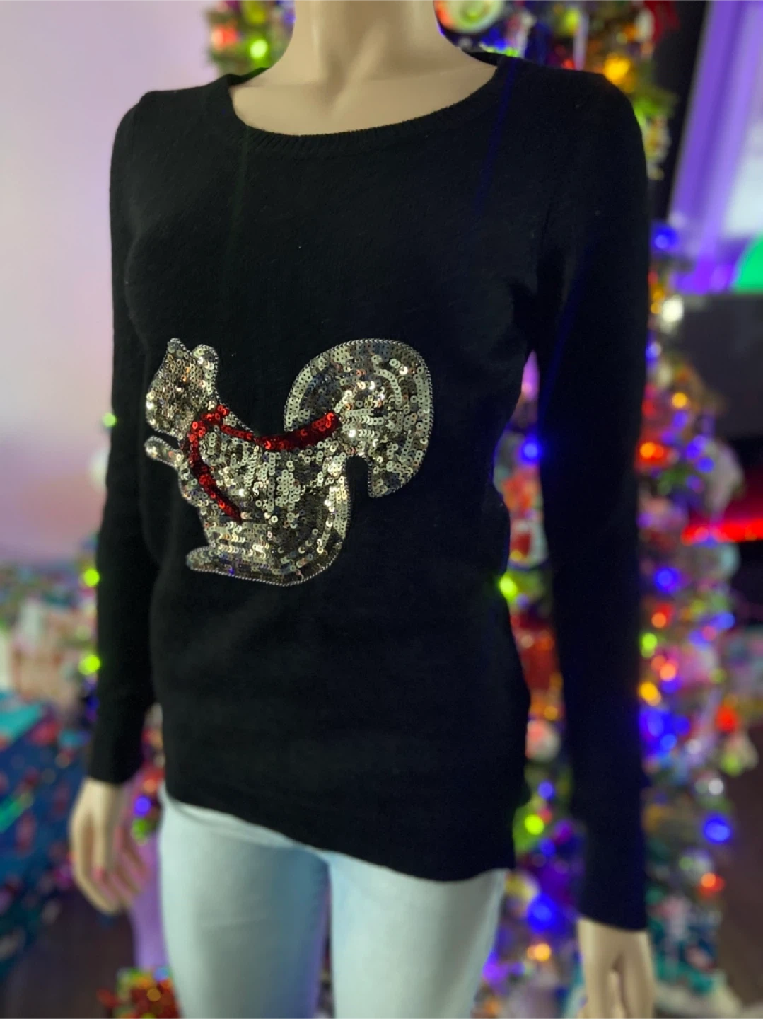 LIKE NEW: XS Ricki’s Black Sequin Squirrel Holiday Sweater