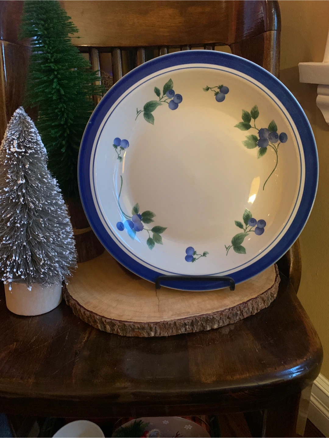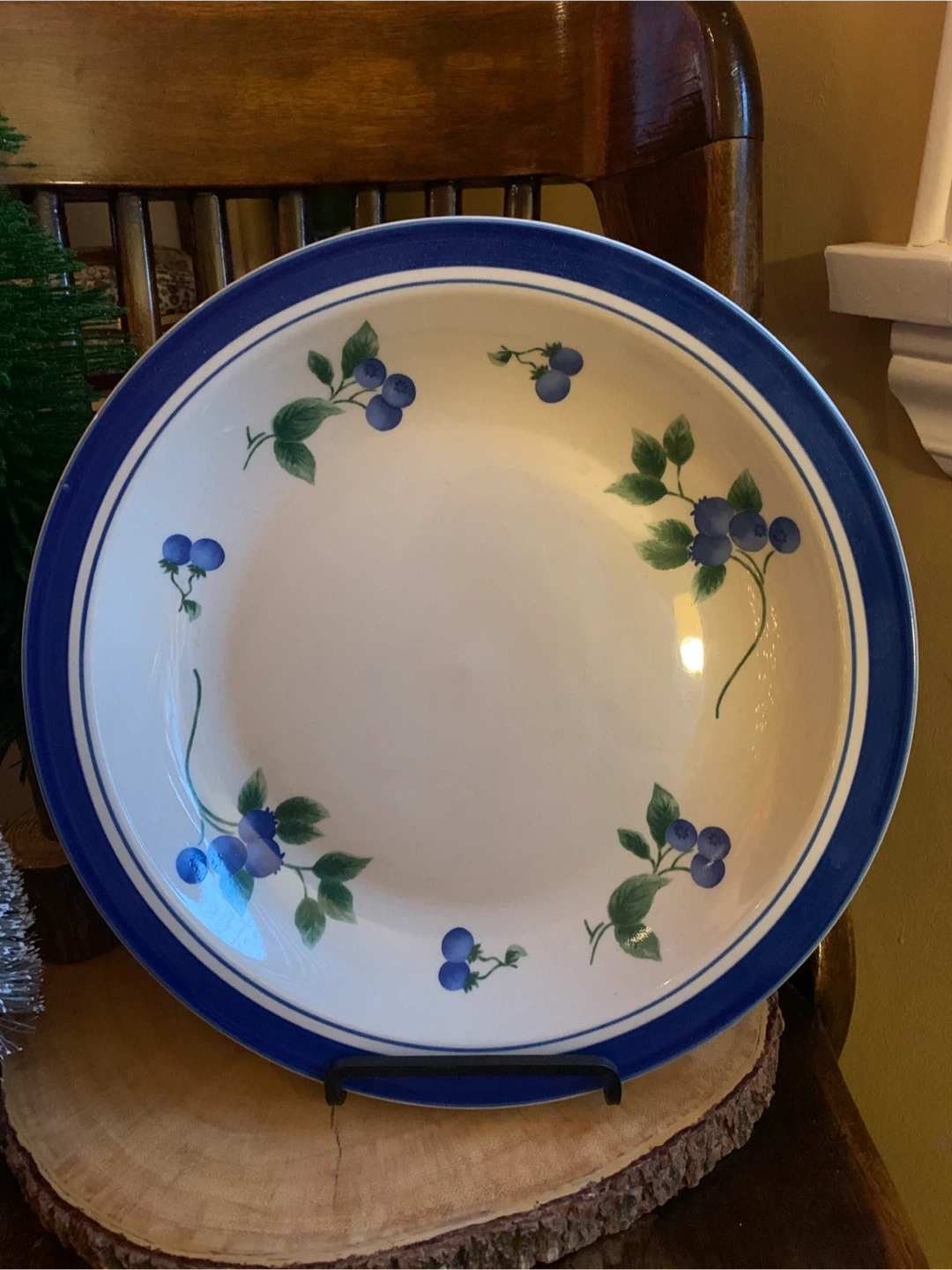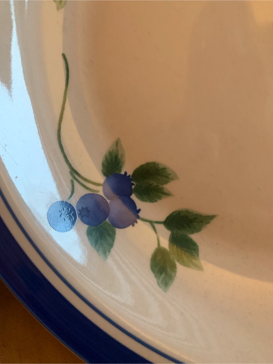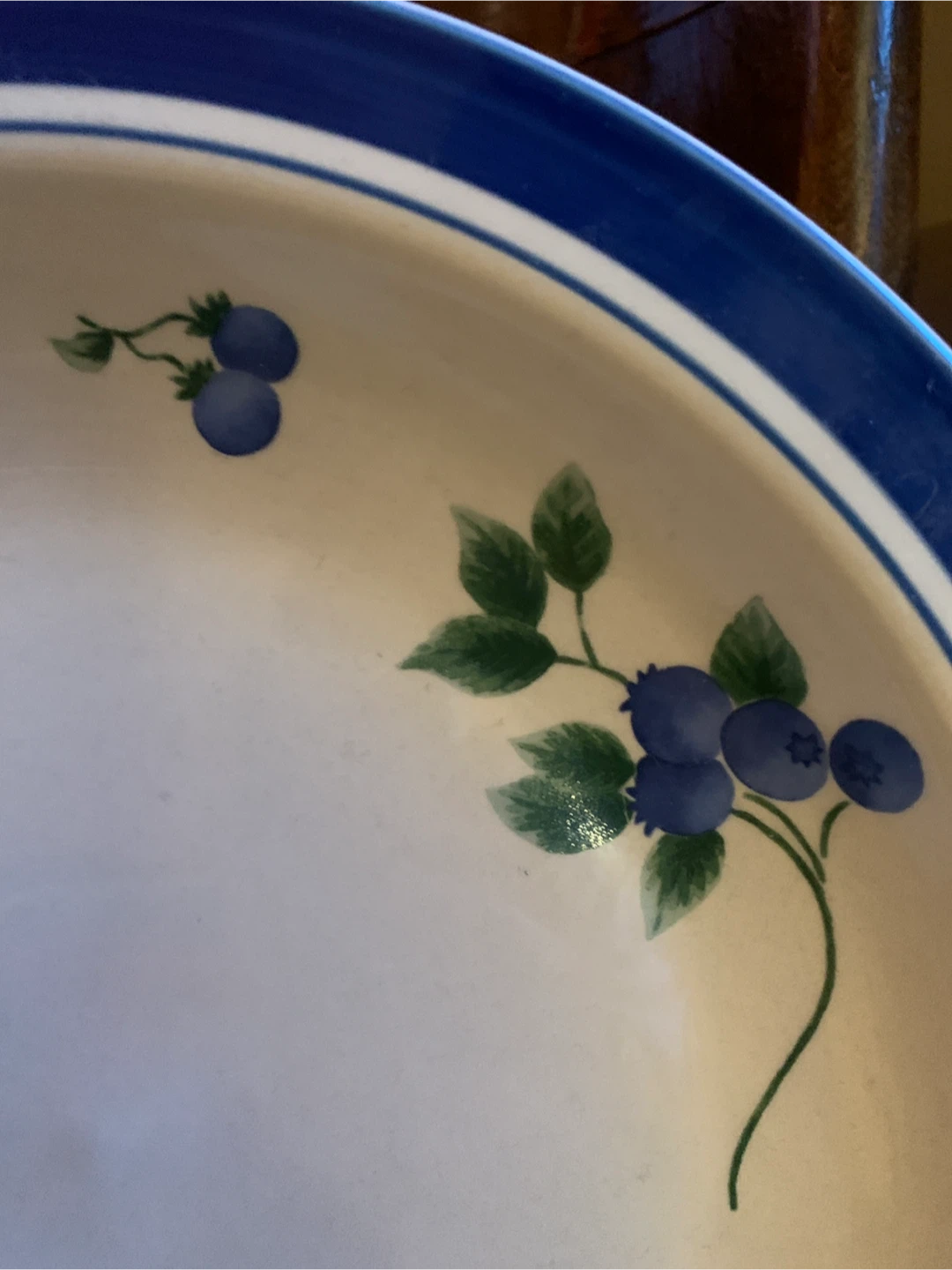Selling a lovely L.L.Bean Blueberry dish! It's oven-to-table safe and features a charming blueberry design that wraps around the dish and a vibrant blue stripe around the rim. Perfect for serving up your favourite pie or dish with a touch of classic style! It has no chips or cracks or crazing. A great multi-functional dish! Cash only please. Props not included.