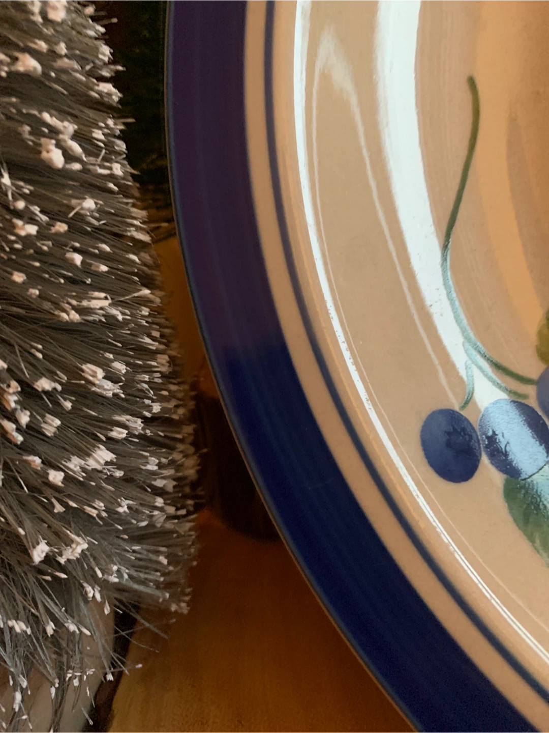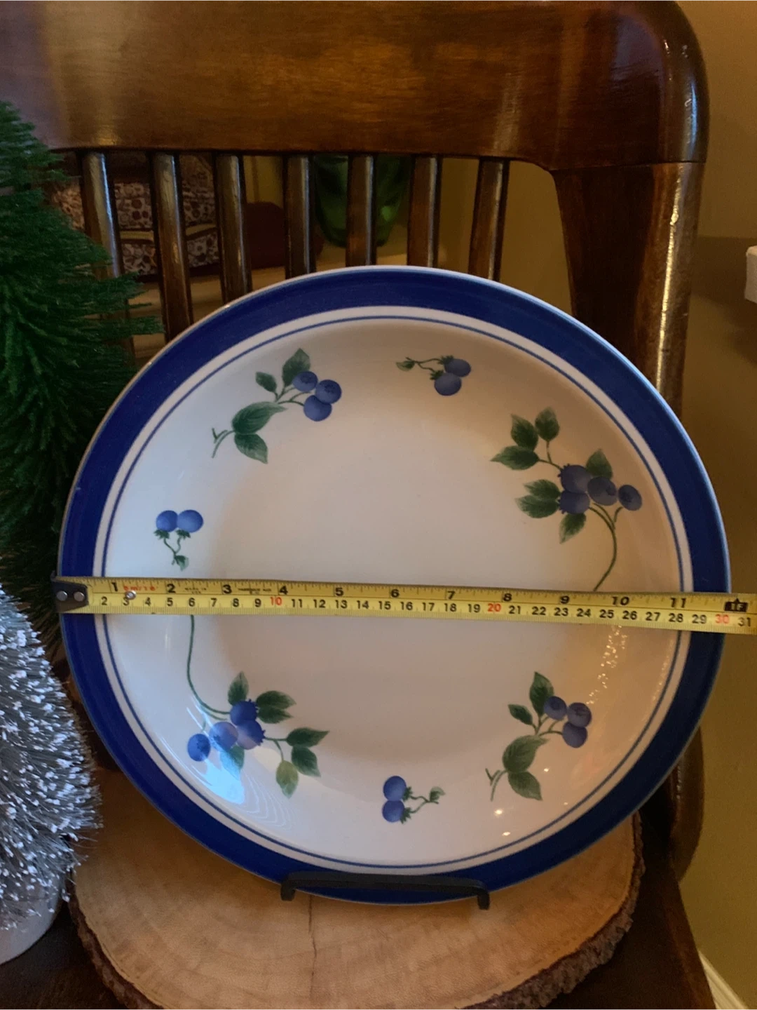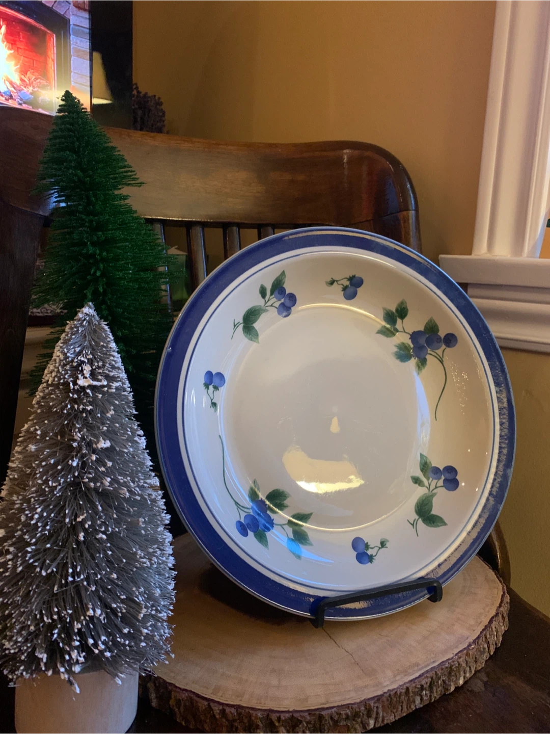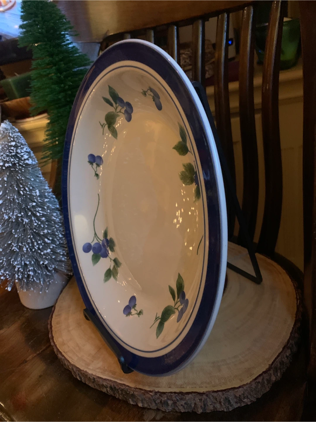 Selling a lovely L.L.Bean Blueberry dish! It's oven-to-table safe and features a charming blueberry design that wraps around the dish and a vibrant blue stripe around the rim. Perfect for serving up your favourite pie or dish with a touch of classic style! It has no chips or cracks or crazing. A great multi-functional dish! Cash only please. Props not included.