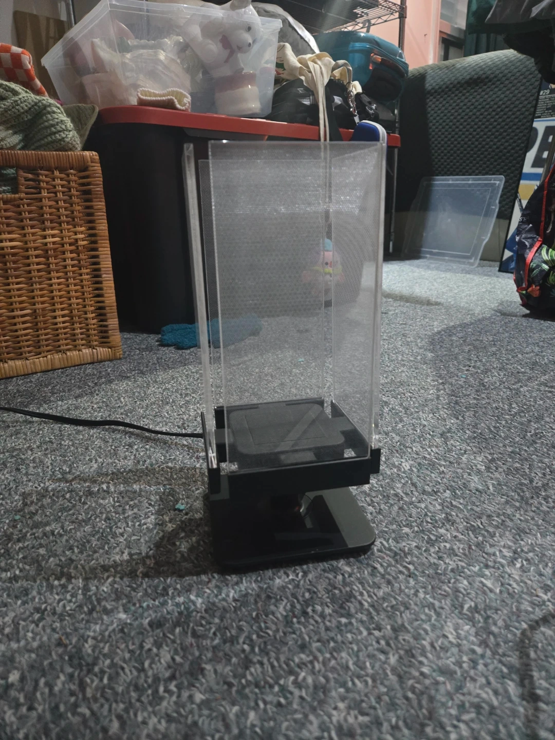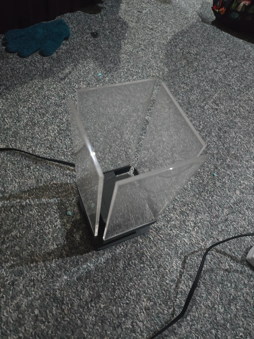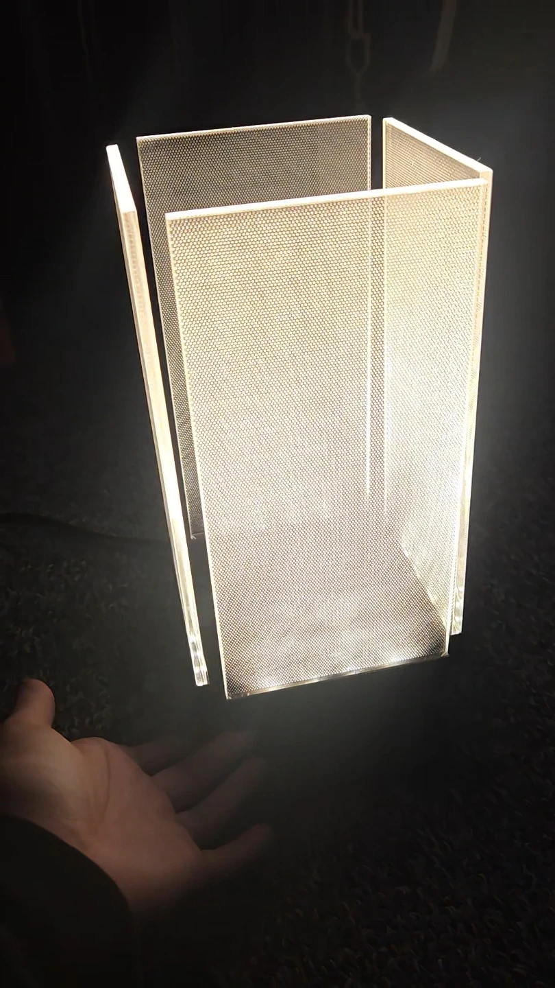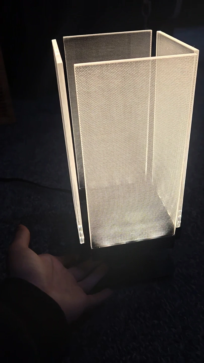 Selling an acrylic LED touch table lamp. Touch lamp under shade once to turn on and off, hold to dim the light. Shades are removable for cleaning, barely used.
