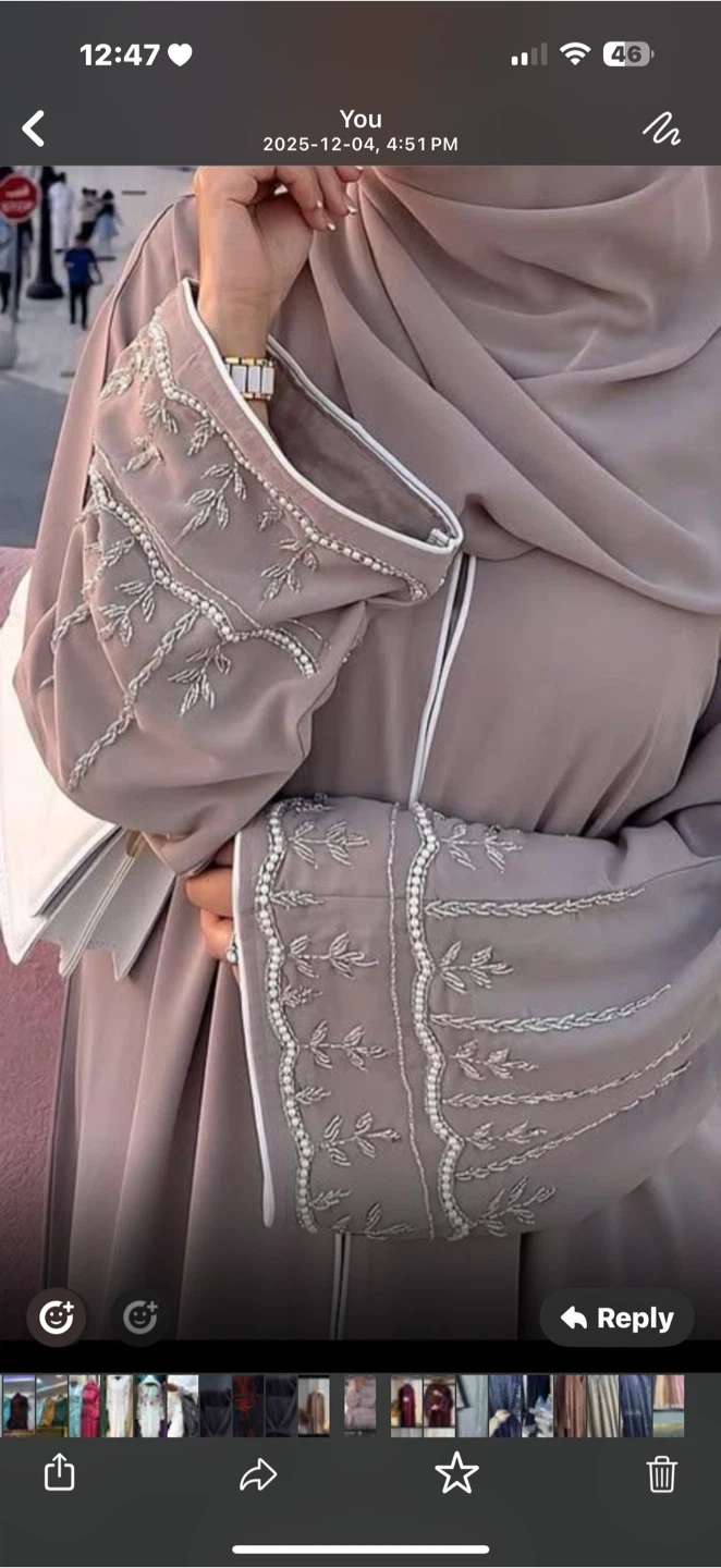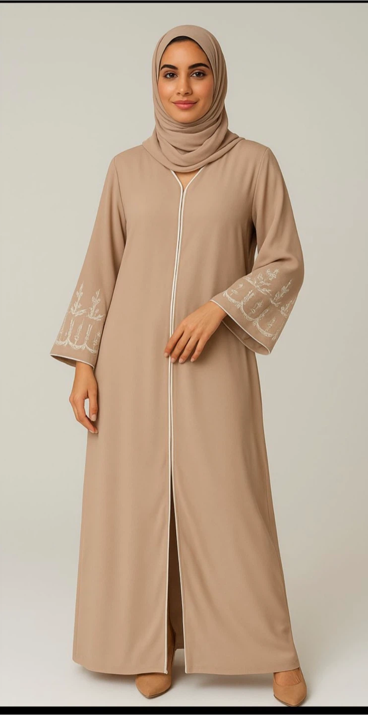 Selling a beautiful beige abaya in size 60. It features delicate embroidery on the sleeves and a stylish, comfortable fit. Perfect for special occasions or everyday wear!