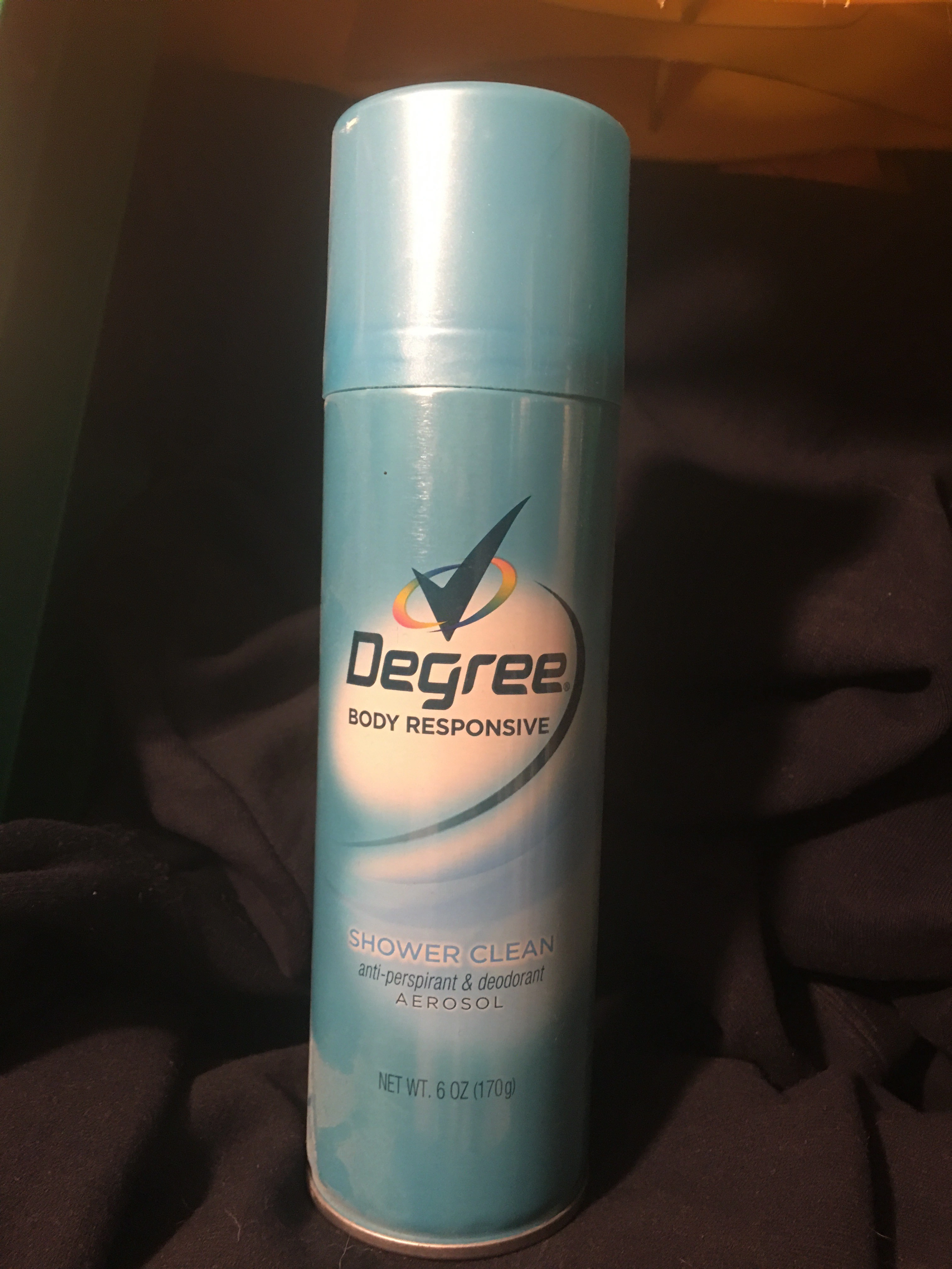 Selling a Degree Body Responsive Shower Clean anti-perspirant & deodorant aerosol. It's a 6 oz size. Shake well and hold about six inches from underarm when applying
