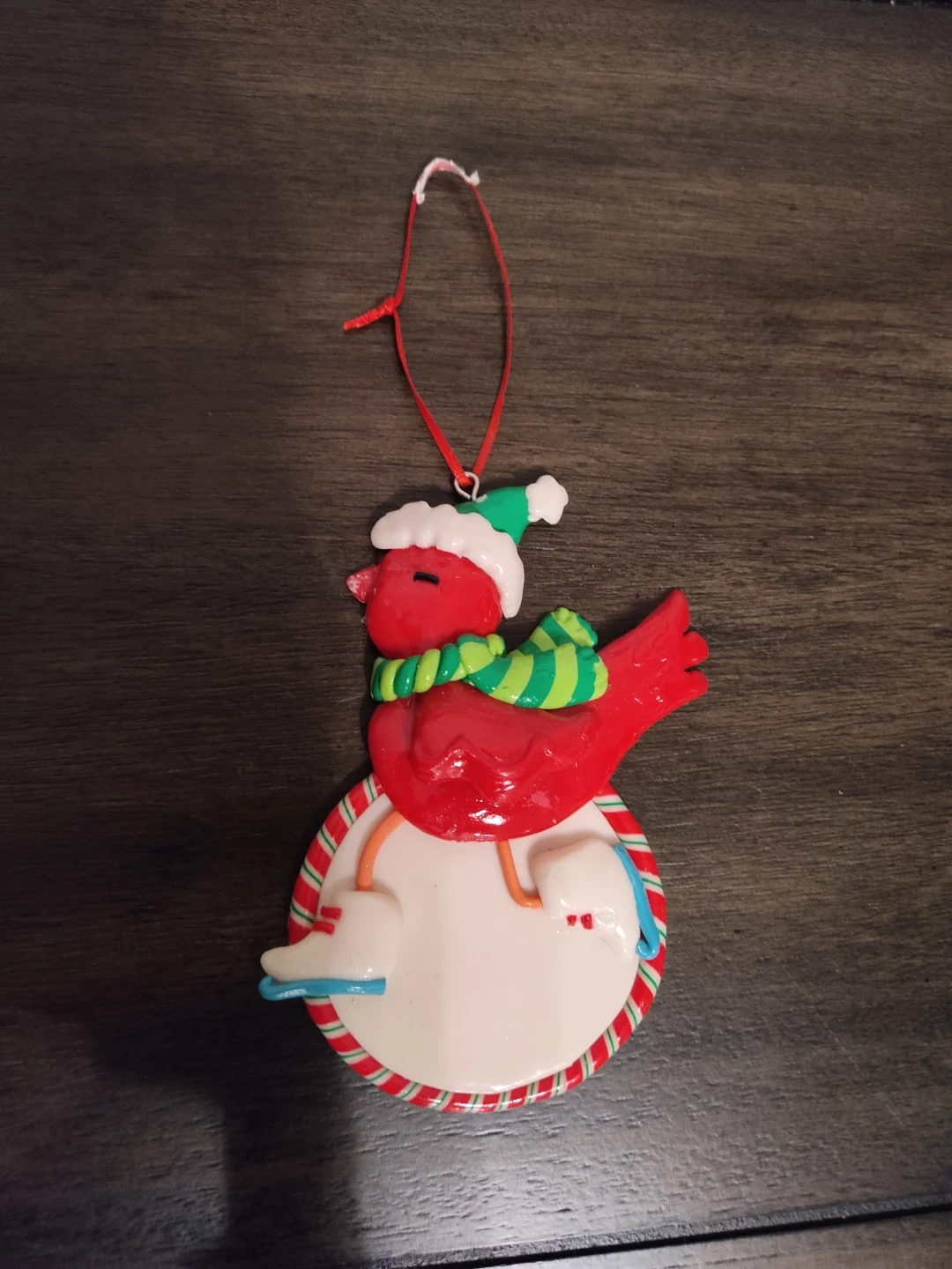 Cute red bird Christmas ornament with a little hat and scarf! It's in great shape and ready to add some festive cheer to your tree