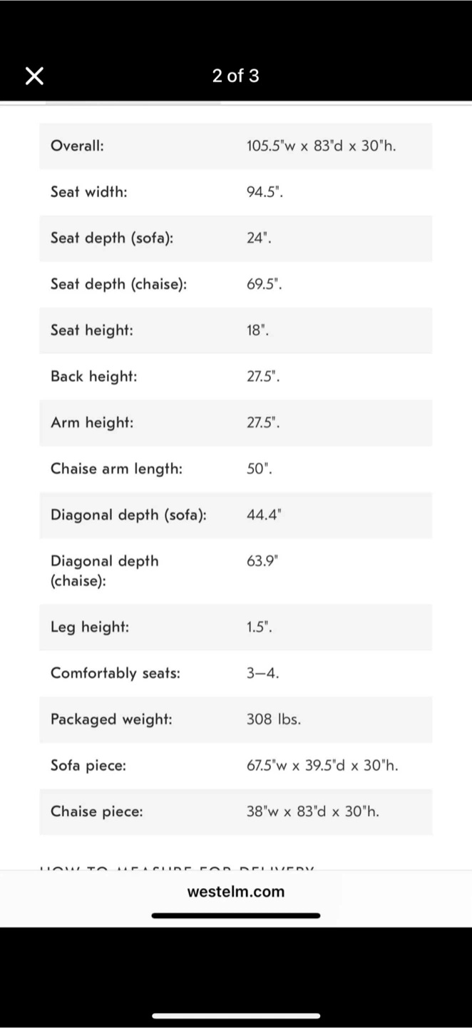 West Elm Shelter 106" Left 2-Piece-FREE DELIVERY