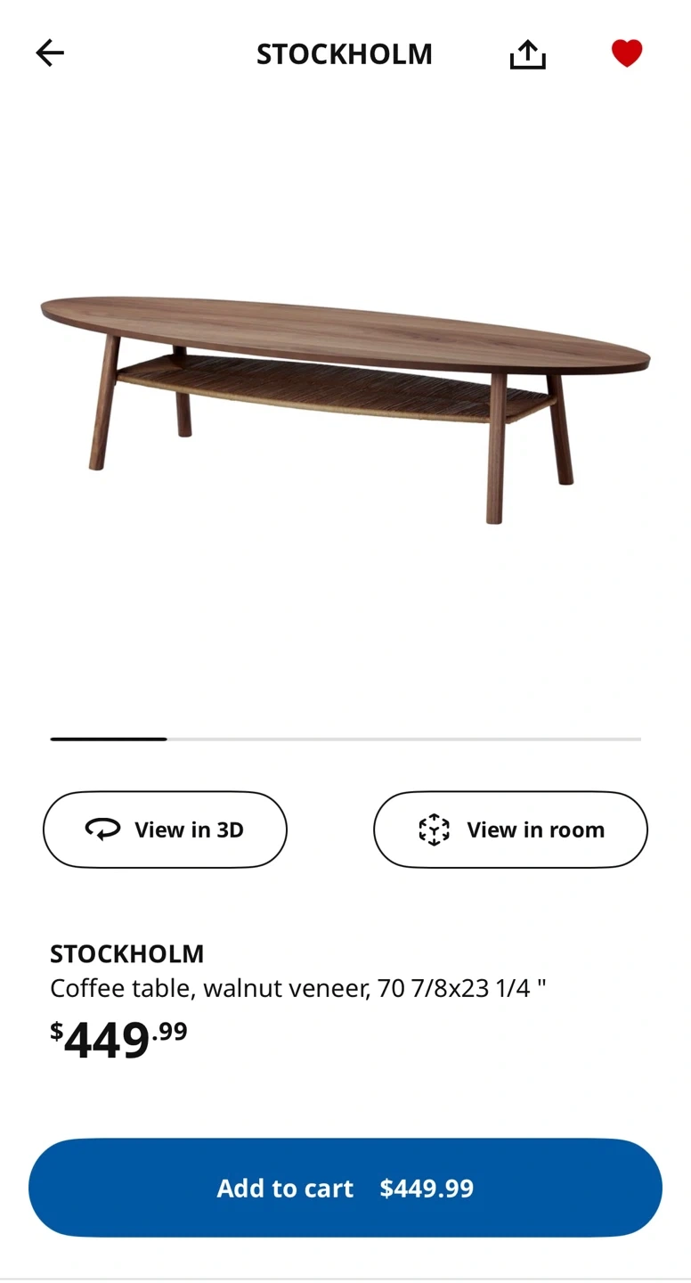 Selling an IKEA STOCKHOLM coffee table with a beautiful walnut veneer finish. It measures 70 7/8x23 1/4".