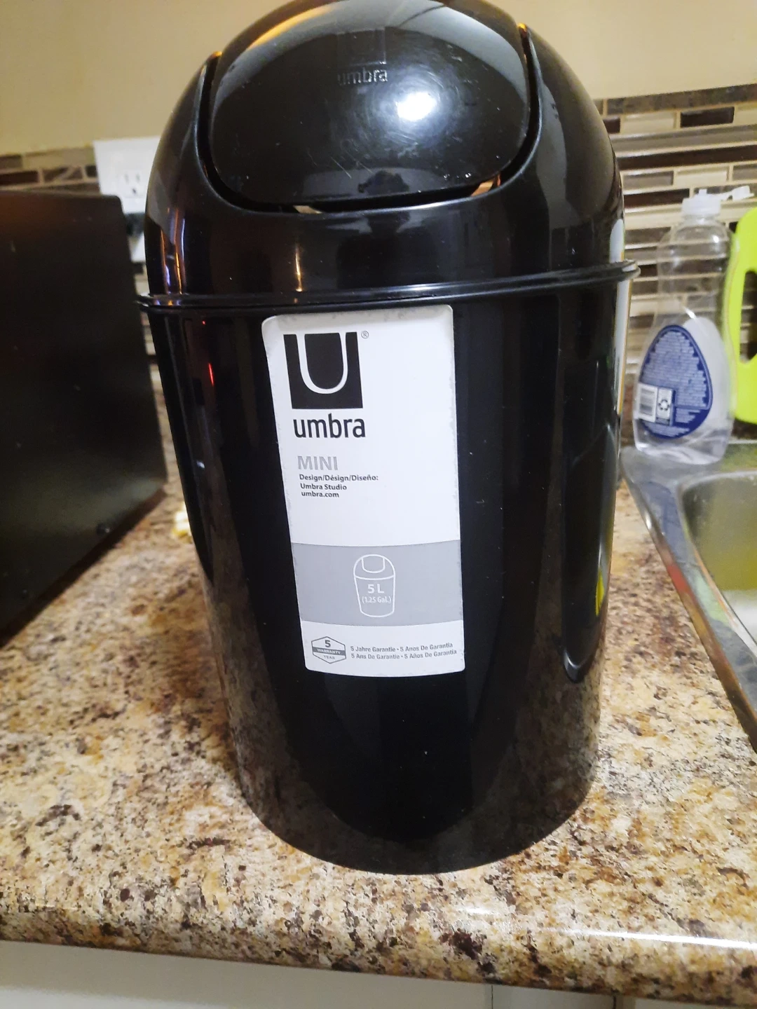 Design and Purpose: This is a compact, contemporary waste can designed for use in small spaces like bathrooms, bedrooms, or home offices. It features a classic cylindrical shape with a domed, removable swing-top lid that keeps trash out of sight.