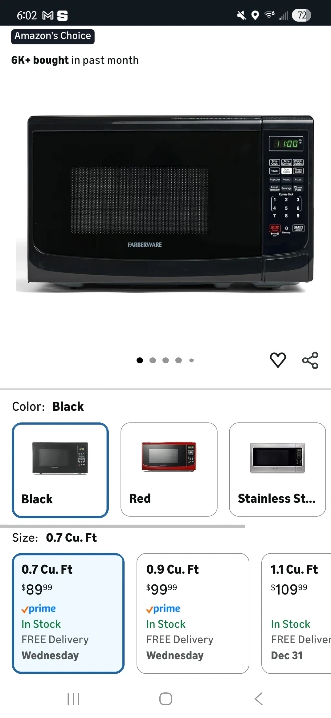 I'm selling a Farberware microwave in black. It's a compact 0.7 cu. ft size, perfect for smaller kitchens or limited counter space. Originally bought for $89.99. It's currently bubble wrapped, but I can unwrap it for you if you prefer it that way.