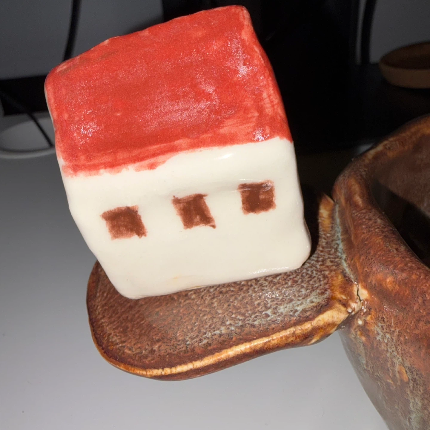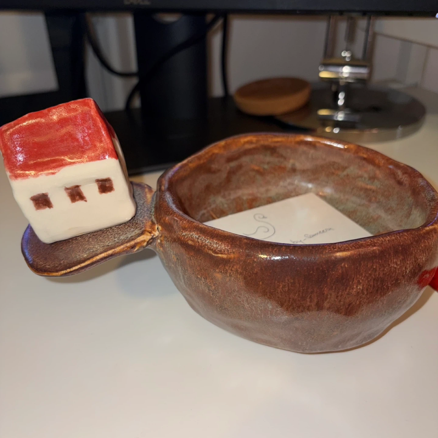 Here's a charming handmade bowl with a little house attached! It's a unique piece from Ceramics by Sameera, perfect for adding a touch of whimsy to your space.