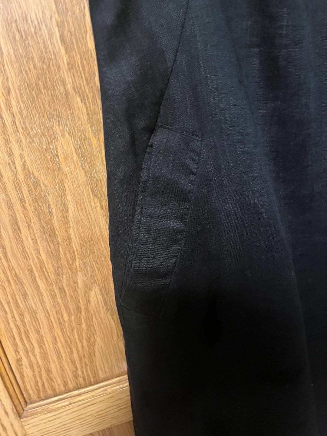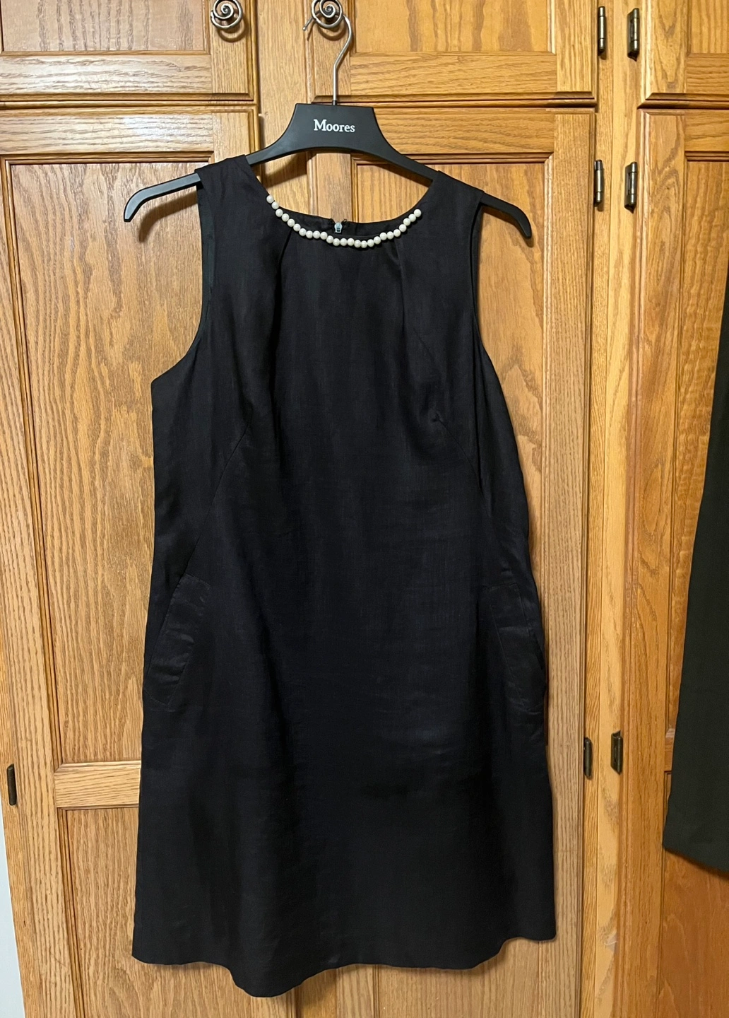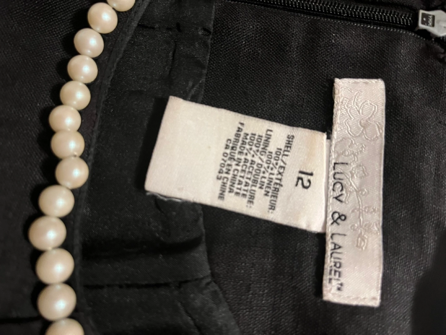 Lucy & Laurel black linen with two pockets, it is in size 10-12. The dress is made of 100% linen for the shell and exterior, and 100% acetate for the lining. It's a stylish and comfortable piece for any occasion!