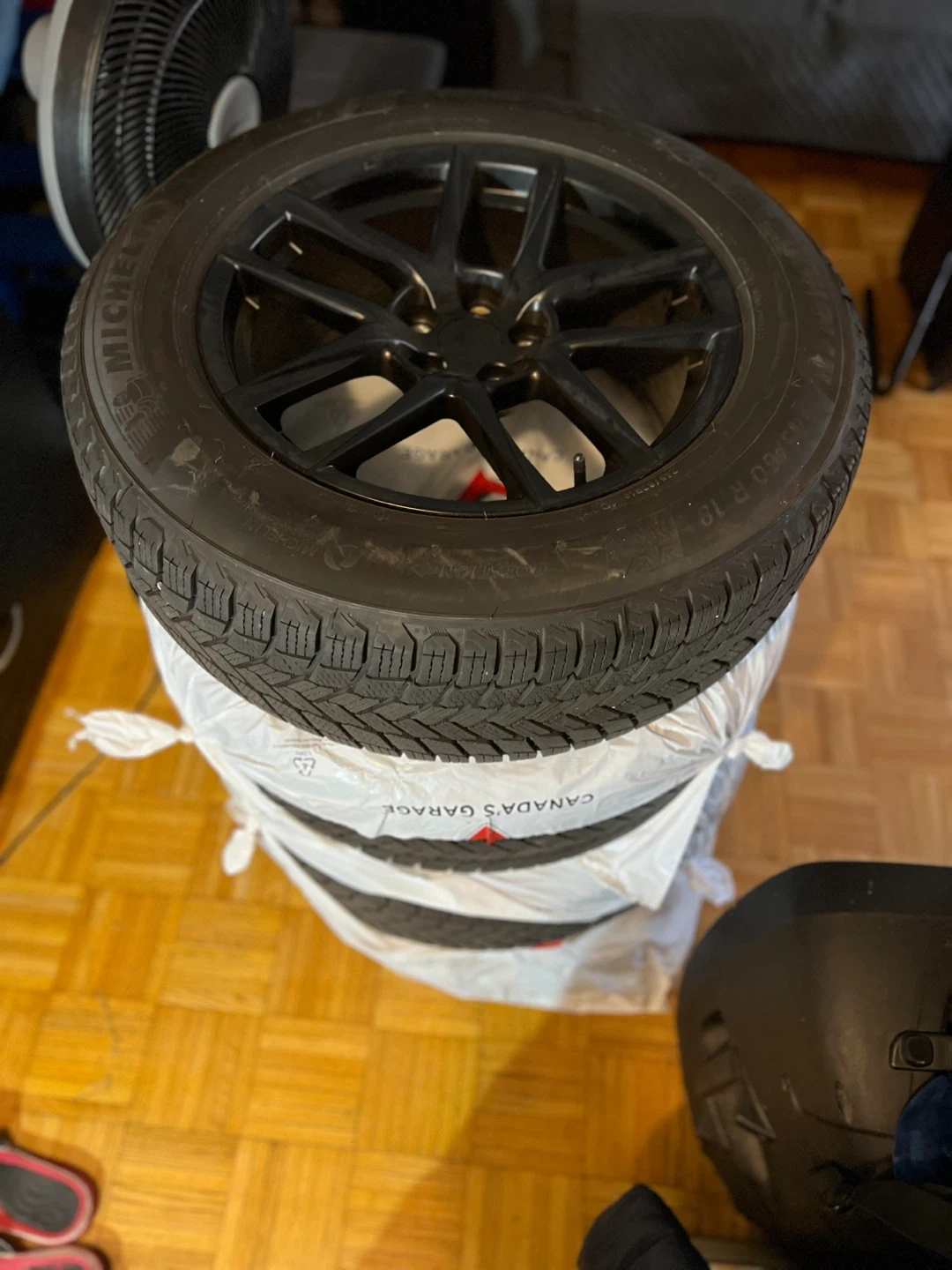 Selling a set of Michelin X-Ice Snow winter tires, size 245/60R18. These tires provide excellent traction in snowy and icy conditions, ensuring a safe and comfortable winter driving experience. They are in great condition 1month used! Details show all in the picture..