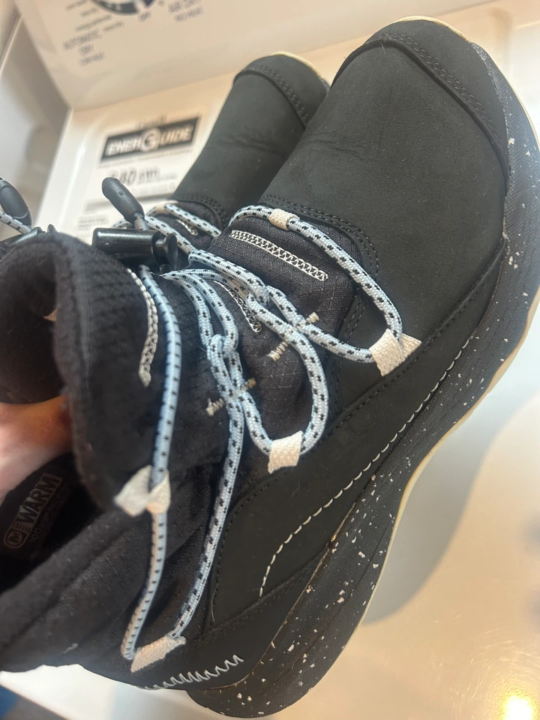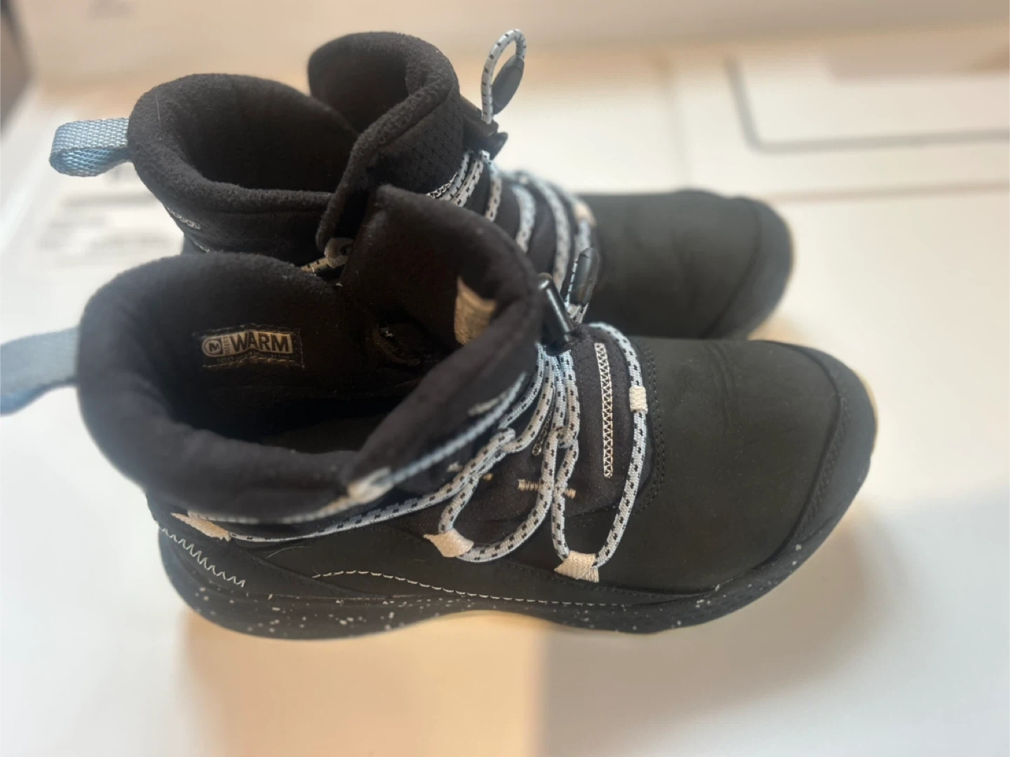 Here are some Merrell winter boots in women's size 7.5. They are black with a unique lacing system. Perfect for keeping your feet warm and dry this winter! Retails for $200. Used one season by my teen daughter who’s now outgrown them.