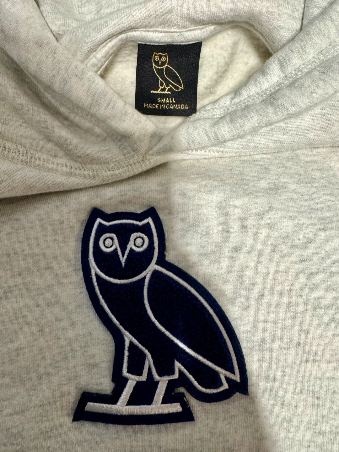 Selling an OVO Classic Owl Hoodie in ash grey. It's a size small can fit medium and made in Canada with 100% cotton. Perfect for staying cozy and repping that iconic owl! Good condition. Cash and for pick up only..