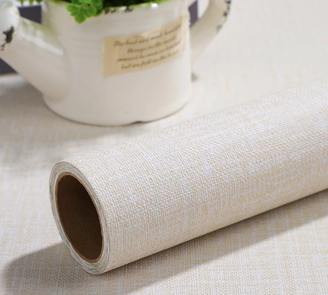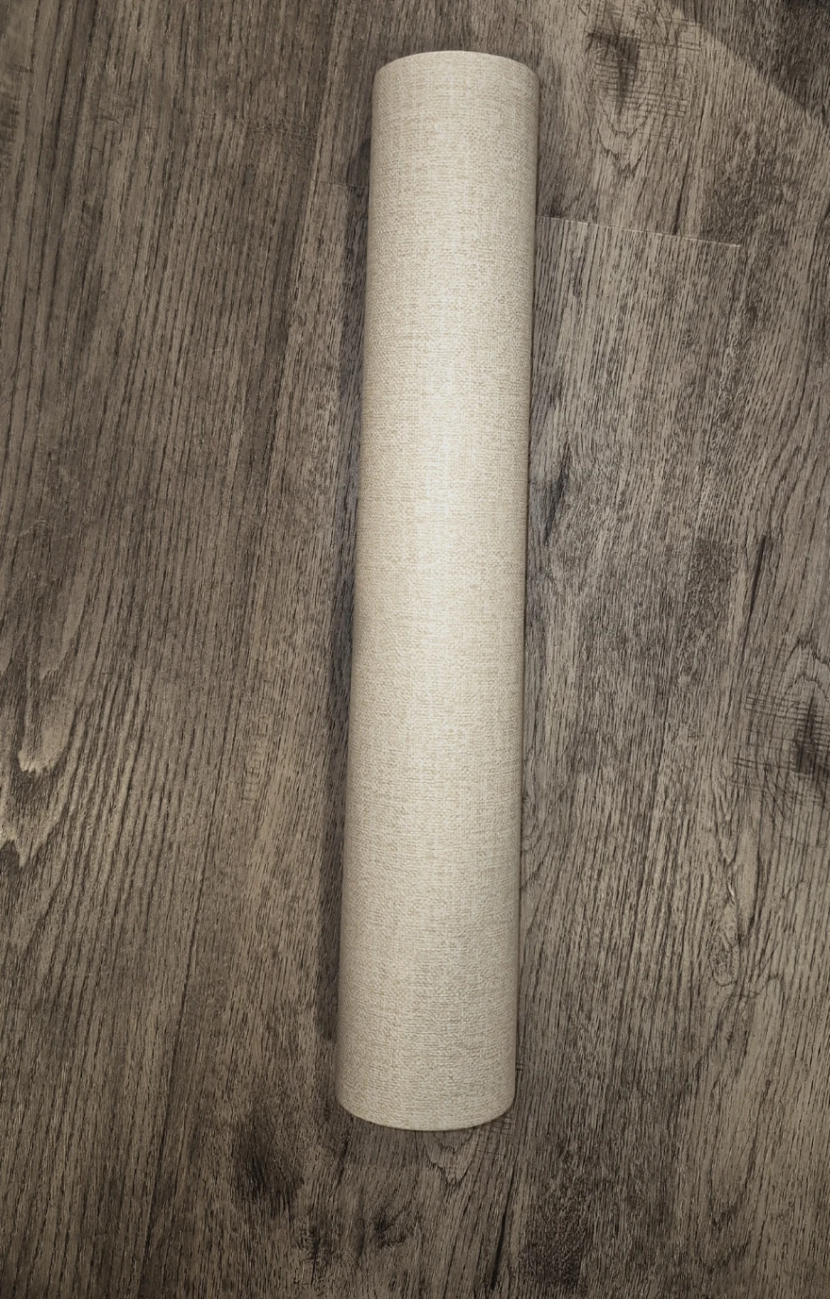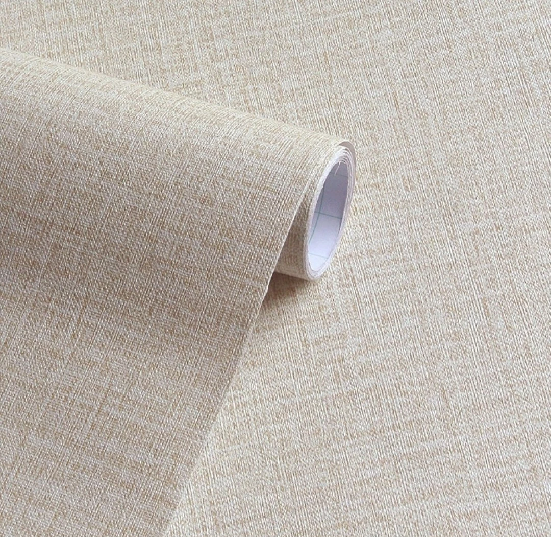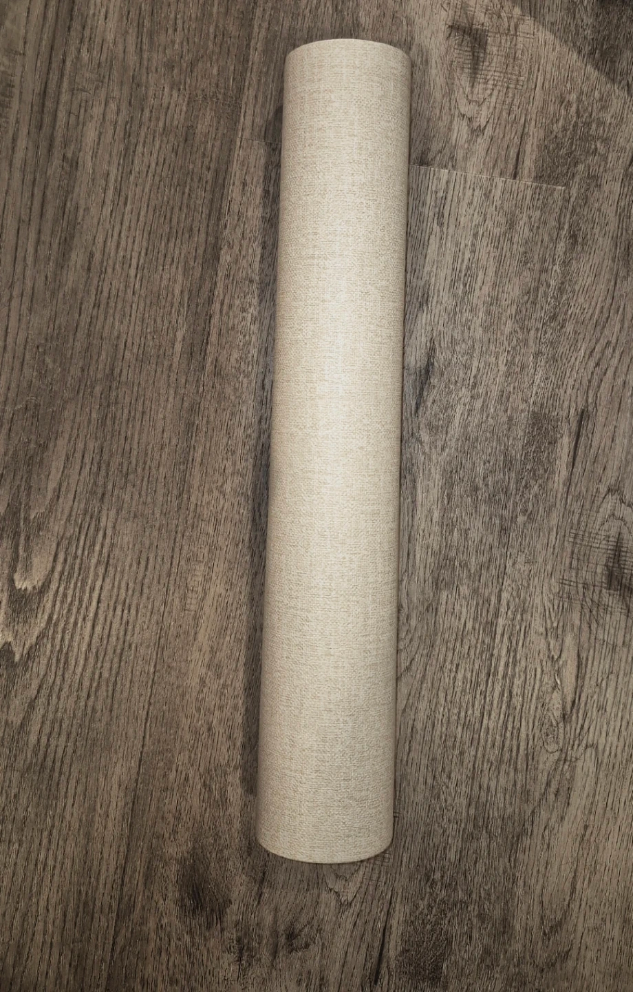 Textured grasscloth wallpaper in a neutral beige tone! 15.7"×374" It's perfect for adding a subtle touch of elegance to any room. The material has a nice woven texture that catches the light beautifully. Self-adhesive, waterproof, vinyl. Have multiple rolls available.