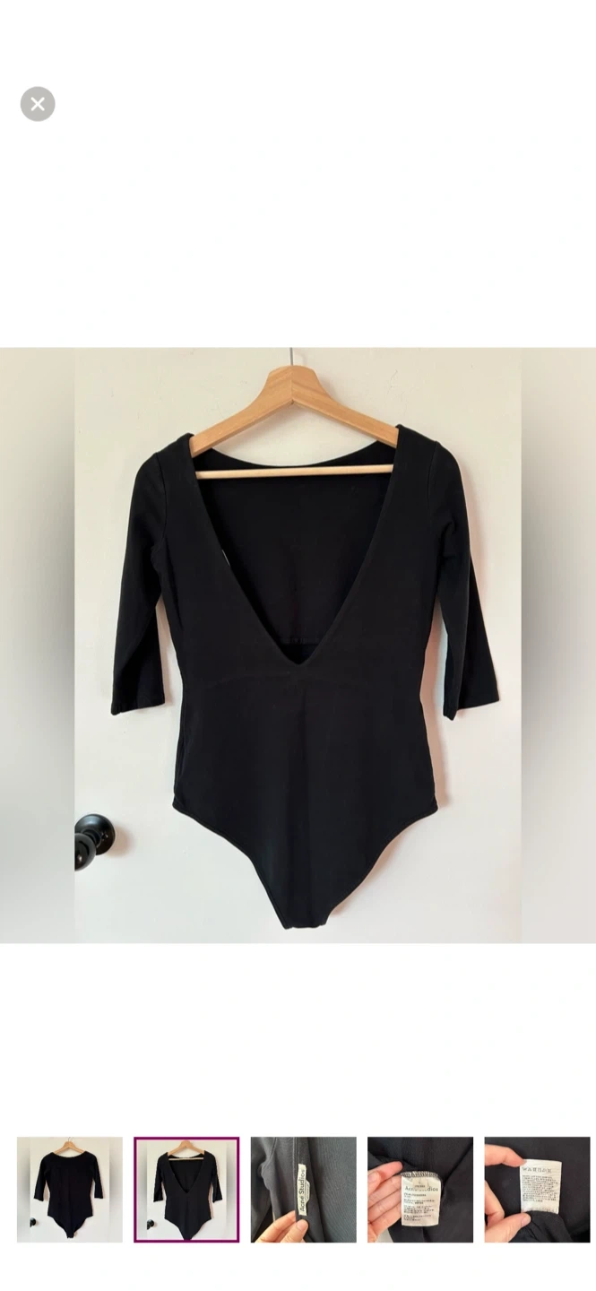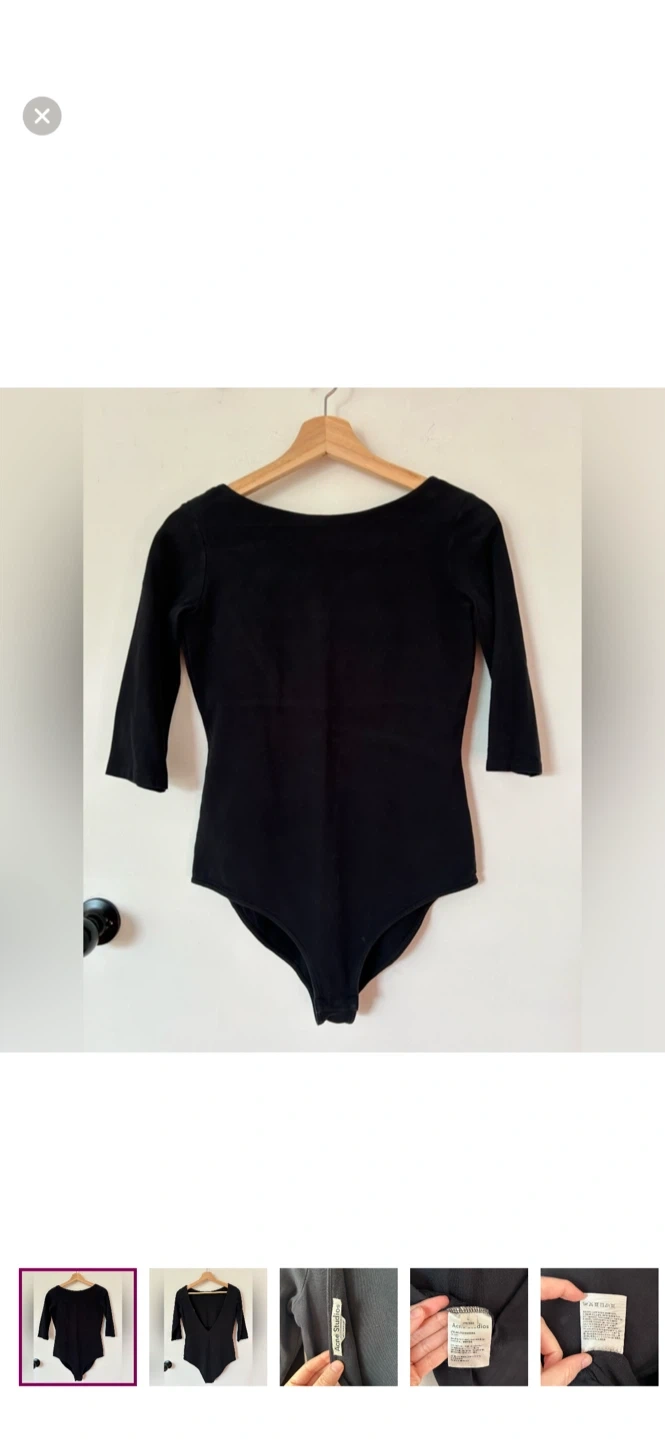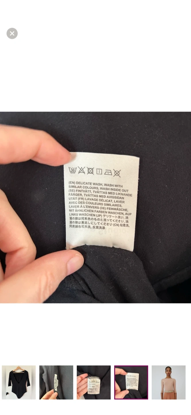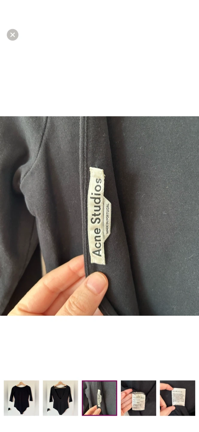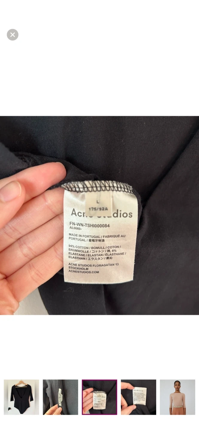 Selling a black bodysuit from Acne Studios in size L. It's made in Portugal from 94% cotton. Perfect for layering or wearing on its own!