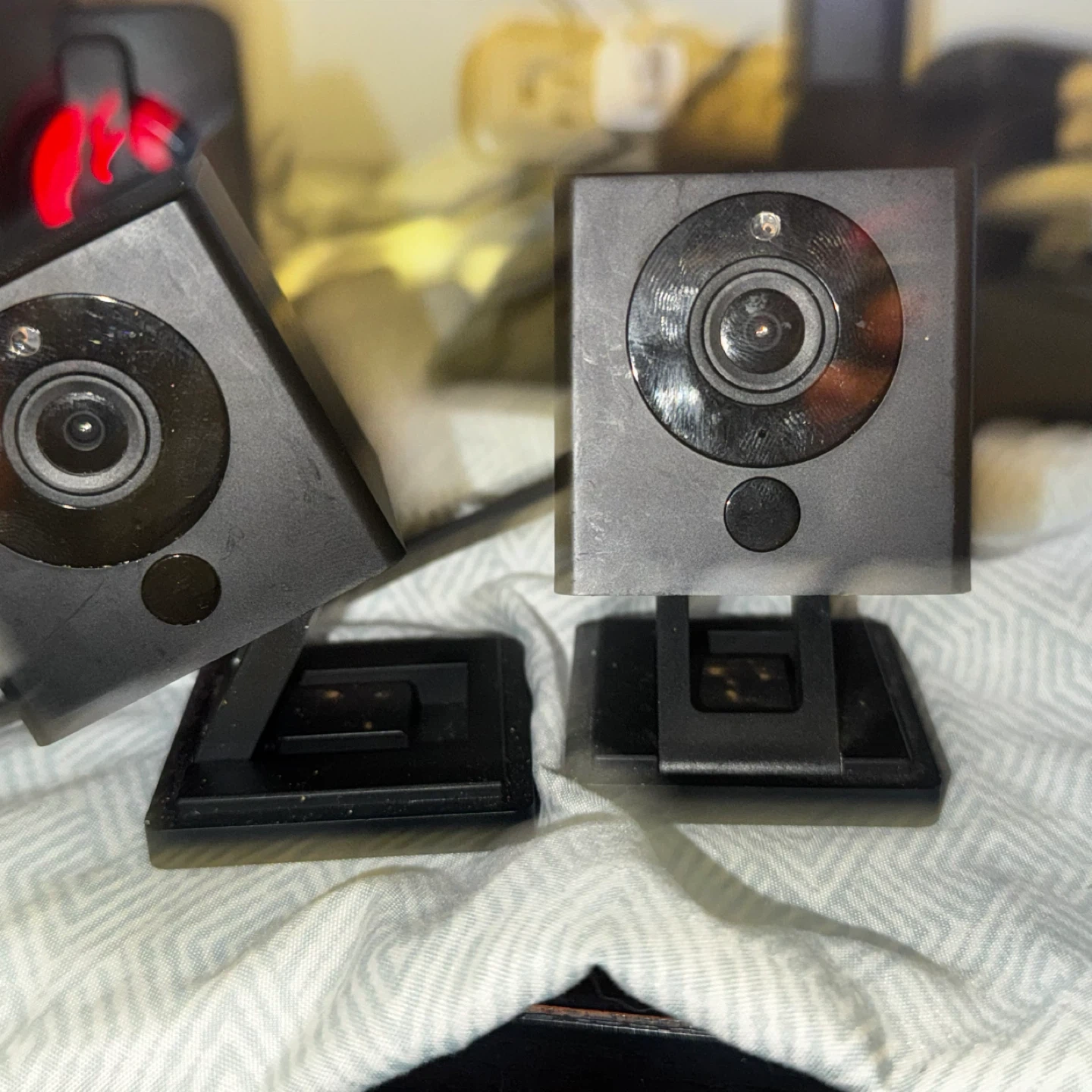 Selling a pair of Wyze Cam v2 security cameras in black! Model number is WYZEC2BK. They're in great condition and ready to keep your home safe and secure