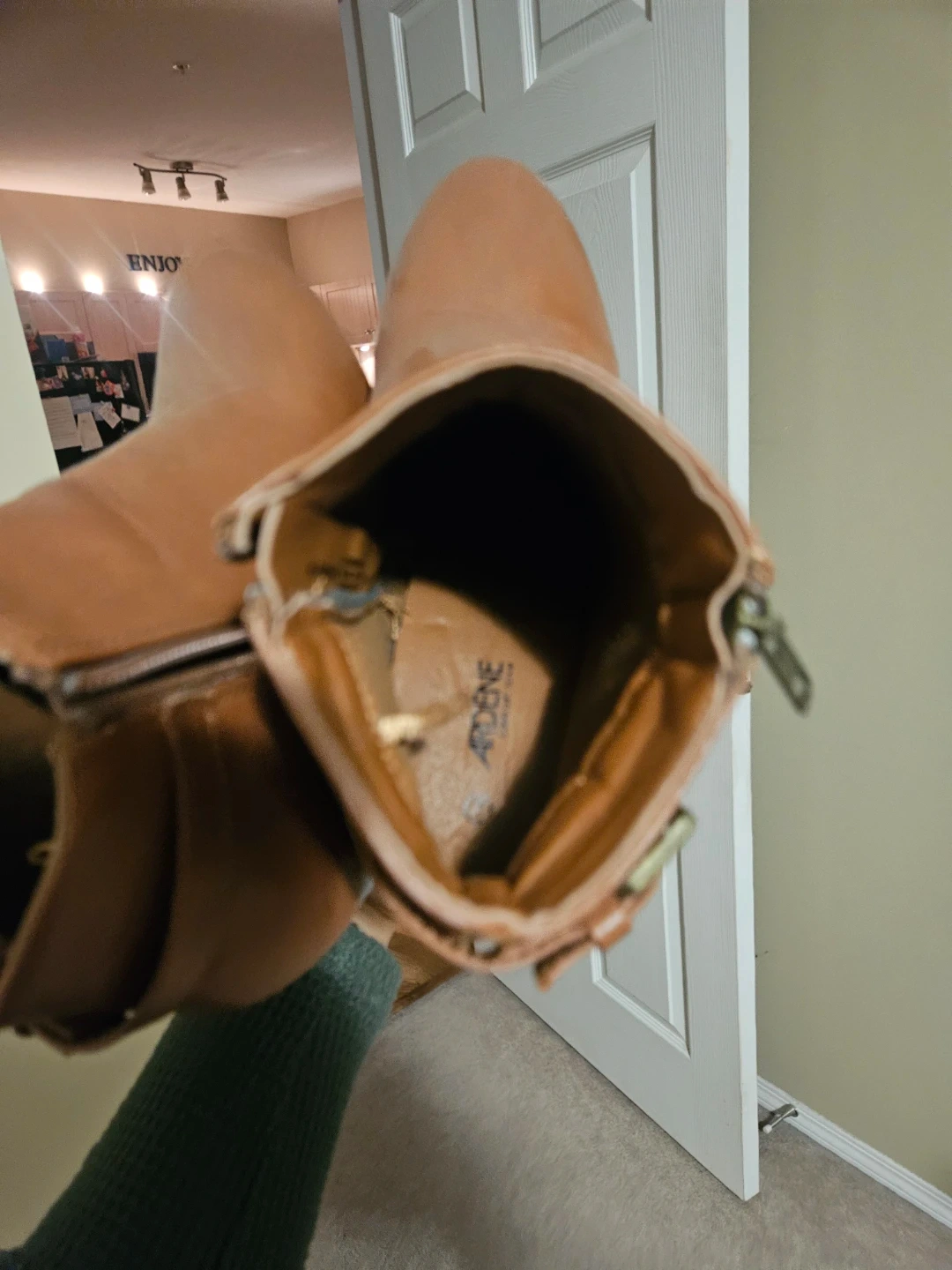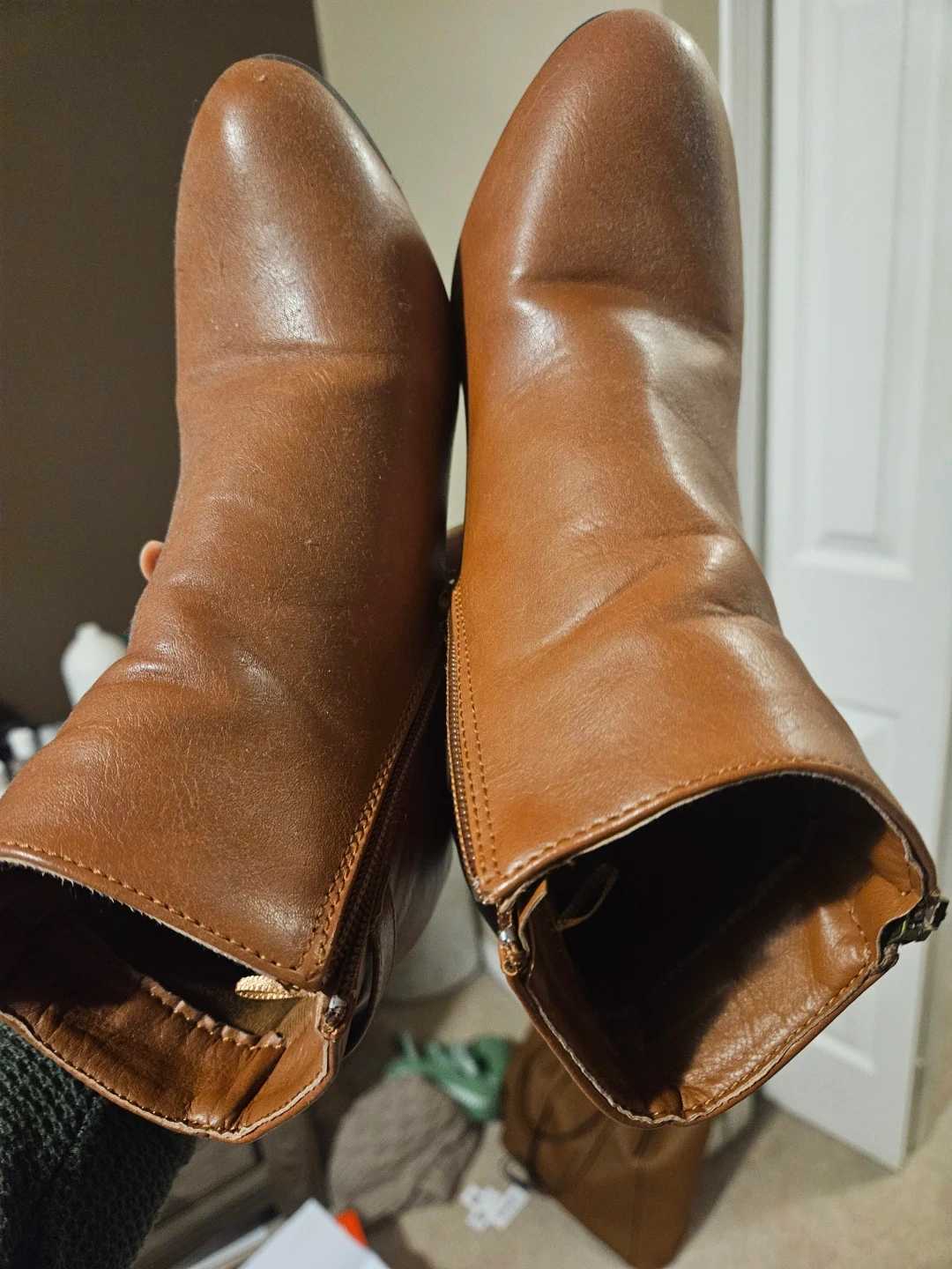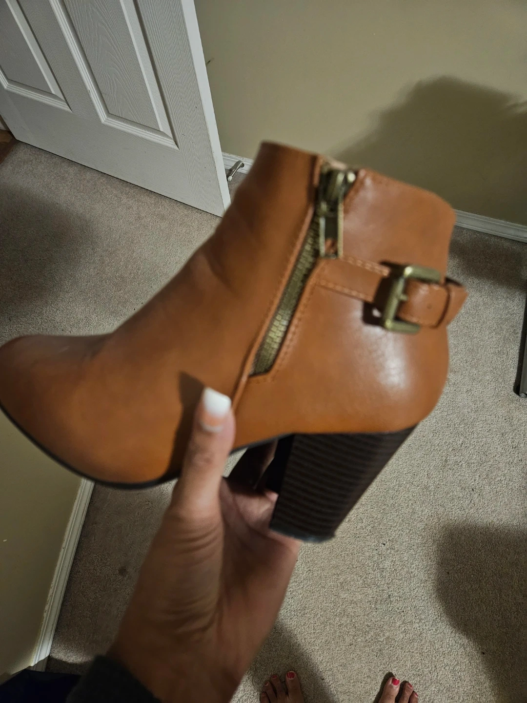 Selling a pair of Ardene ankle boots in a lovely brown colour! They're size 7 and have a stylish zipper and buckle detail. Perfect for adding a bit of flair to your outfit!