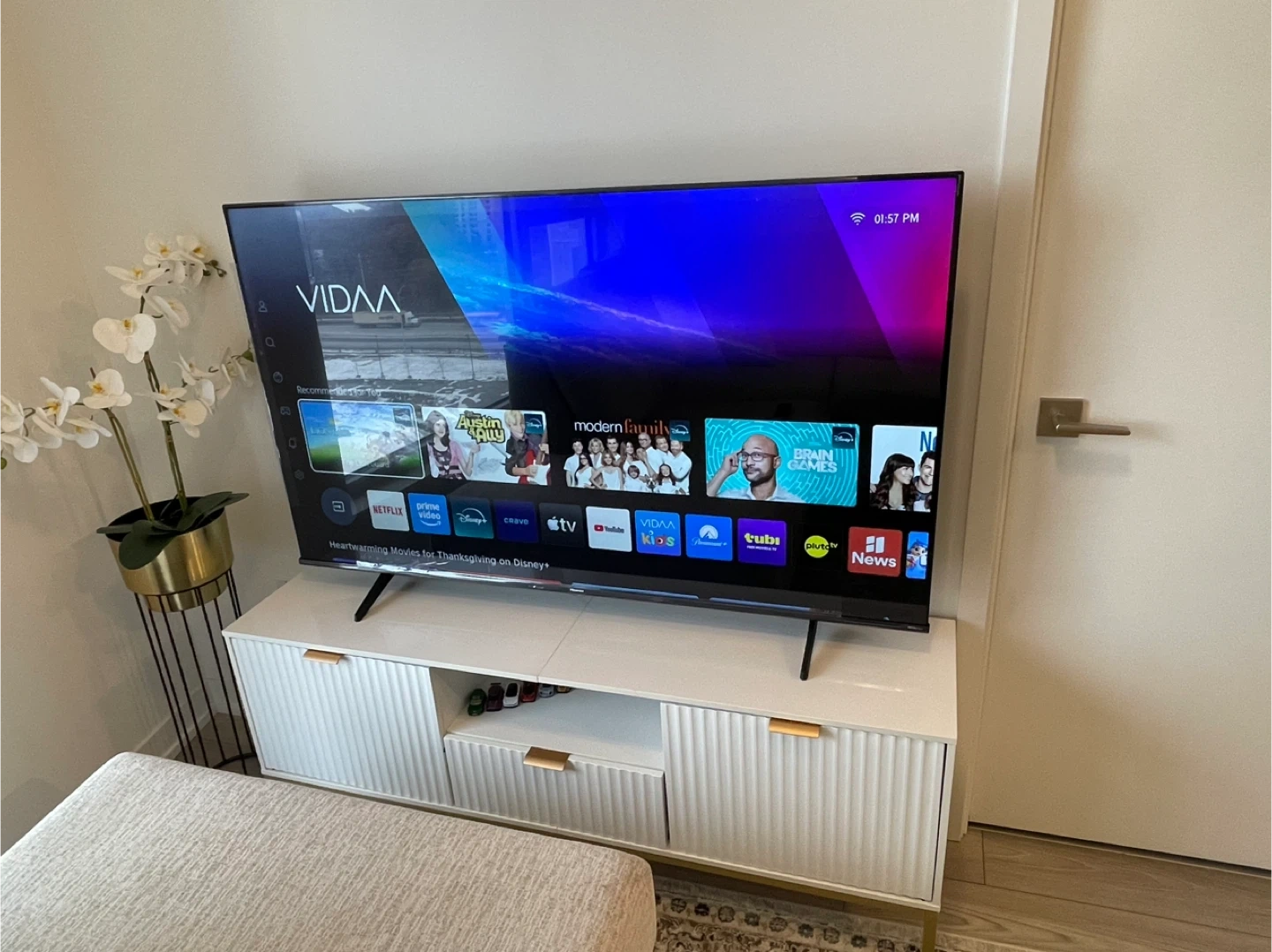Hisense 55" 4k TV , White & Gold TV Stand