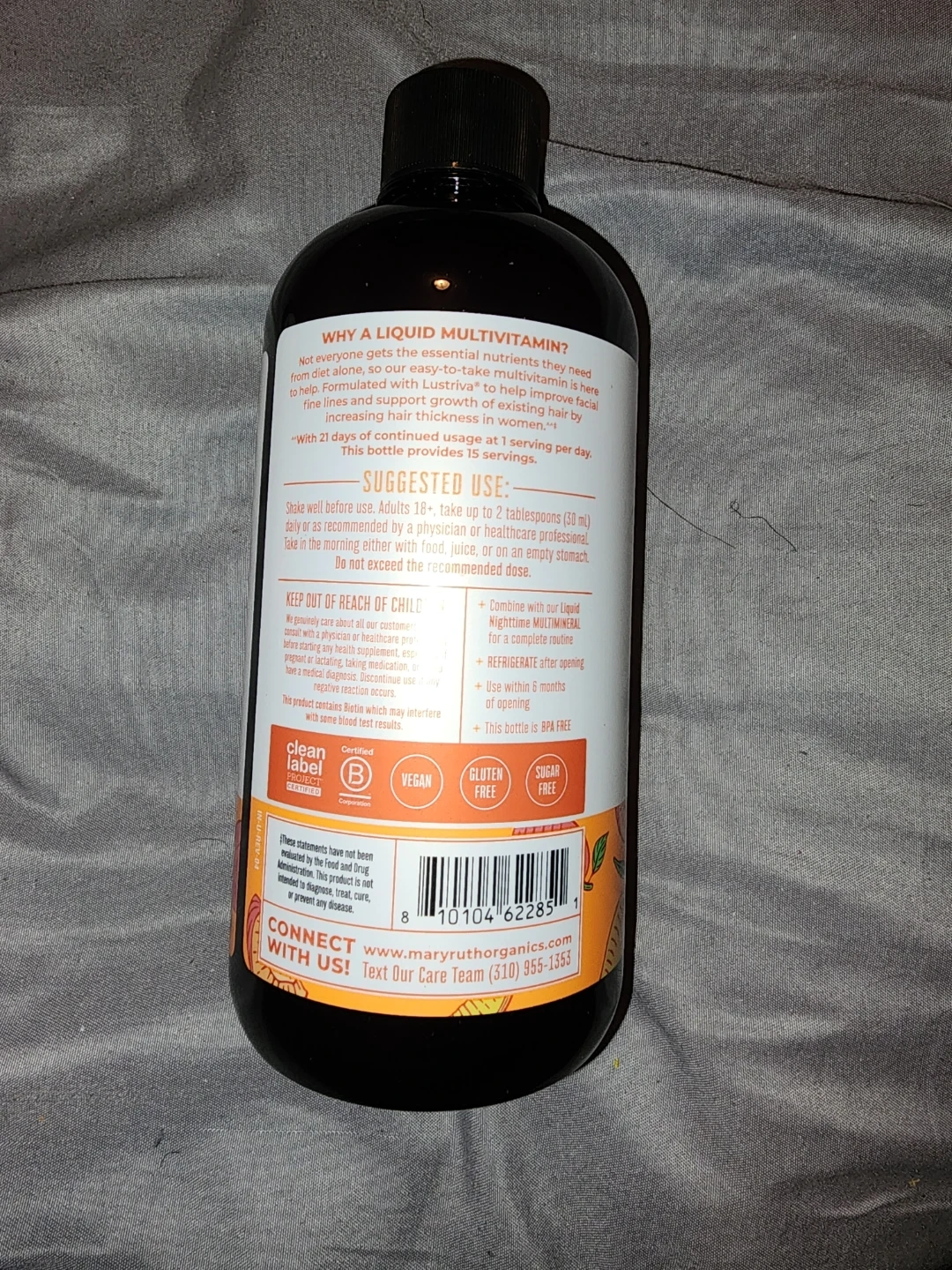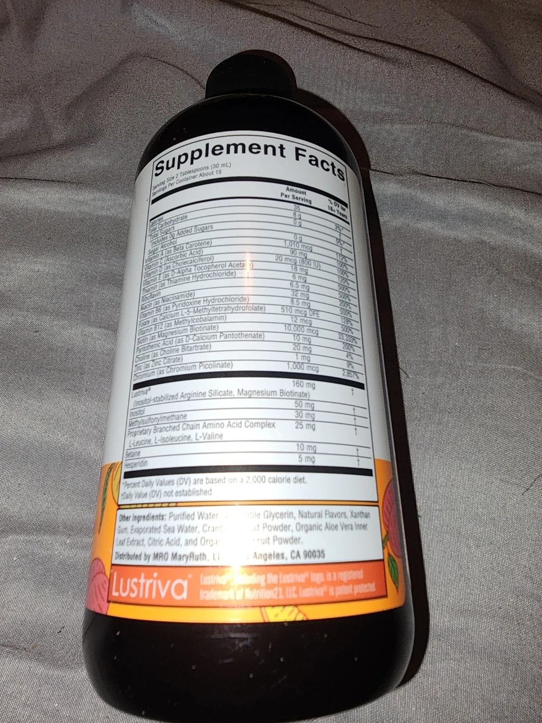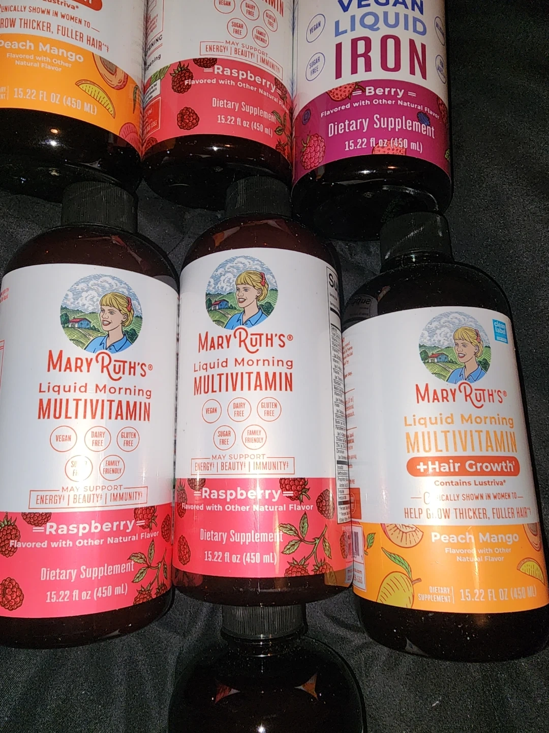 I'm selling MaryRuth's Liquid Morning Multivitamin + Hair Growth and Iron. It contains Lustriva and is clinically shown to help grow thicker, fuller hair. Flavored with other natural flavors. The size is 15.22 fl oz (450 ml). Expiration dates are between 6-2027 and 9-2027. This is a value of about $280. The price is negotiable.