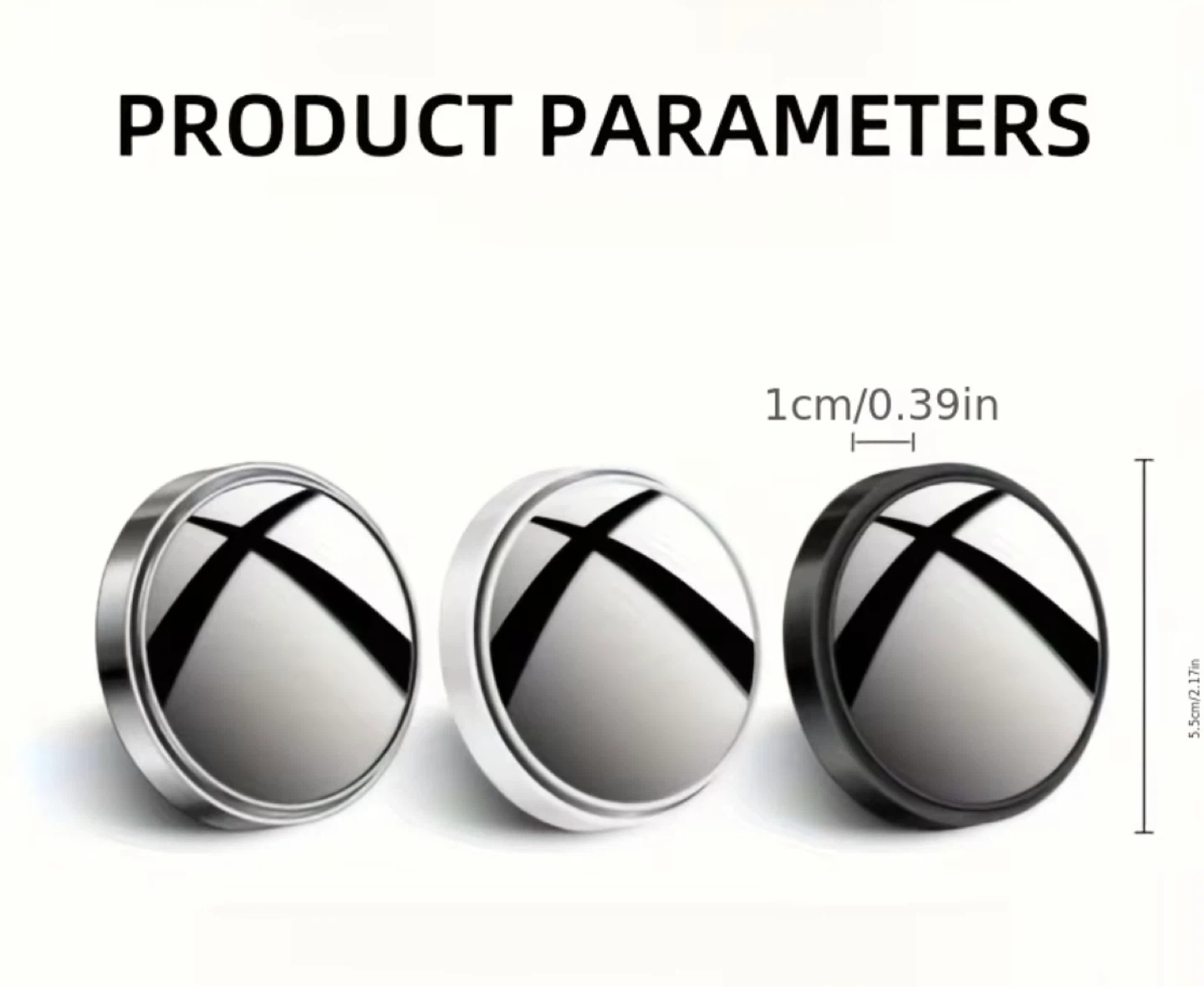 These blind spot mirrors easily attach to your car's side mirrors, giving you a wider viewing angle for safer driving. They're 360° adjustable so you can customize the angle to your liking. Each mirror is about 5.5cm/2.17in in diameter and 1cm/0.39in thick.