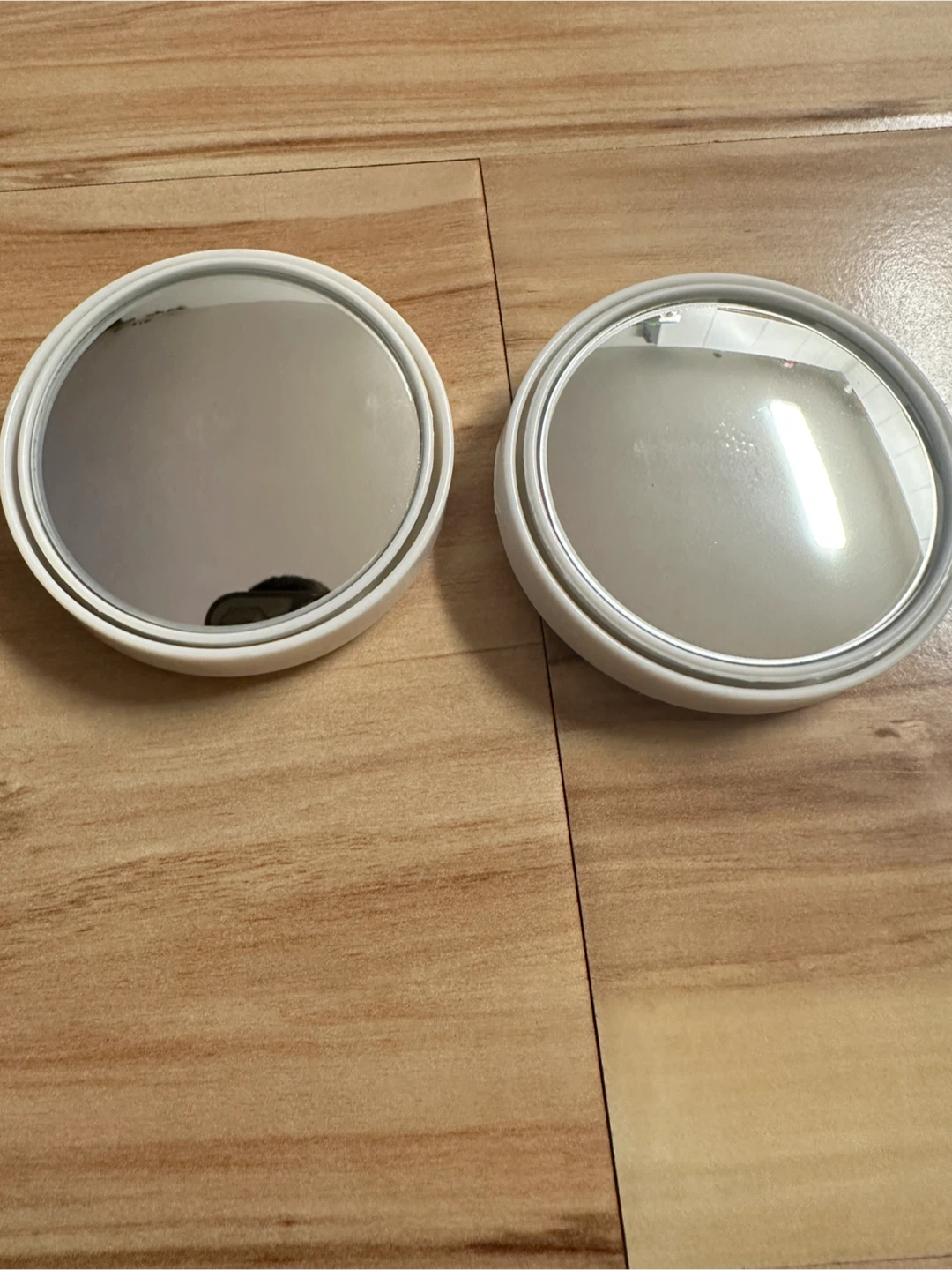 These blind spot mirrors easily attach to your car's side mirrors, giving you a wider viewing angle for safer driving. They're 360° adjustable so you can customize the angle to your liking. Each mirror is about 5.5cm/2.17in in diameter and 1cm/0.39in thick.
