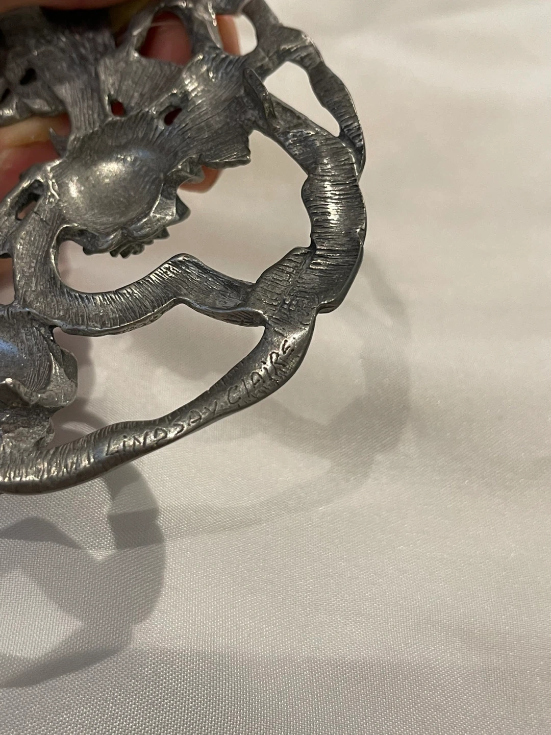 Buy & SellVintage Signed Pewter Rose jar topVintage Signed Pewter Rose jar top$14This is a lovely vintage pewter jar top featuring a rose design. It is signed by the artist. The top measures approximately 6cm in diameter.WHERE TO MEETCheck LocationView MapSELLERverifiedSvitlanaQueensway23514 reviews0 chats·0 favorites·6 viewsSEND CHAT TO SELLERHi Svitlana! I’m interested in your listing.Hi Svitlana! I’m interested in your listing.Get the Karrot app to chatSign In to chat