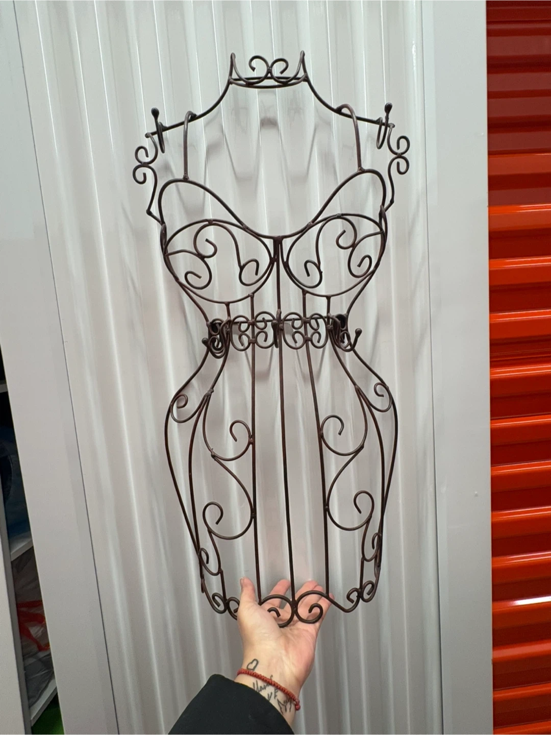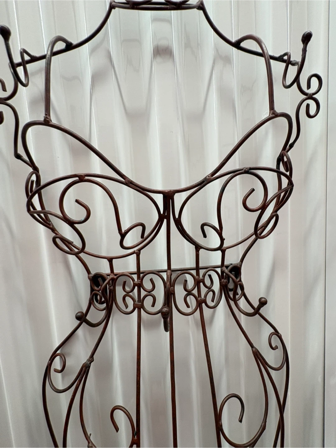 Decorative metal jewellery hanging mannequin. It's a unique and stylish way to hang necklaces, bracelets, and more, adding a touch of elegance and vintage charm to your home decor. Perfect for displaying jewelry & headbands or simply as a statement piece on your wall.