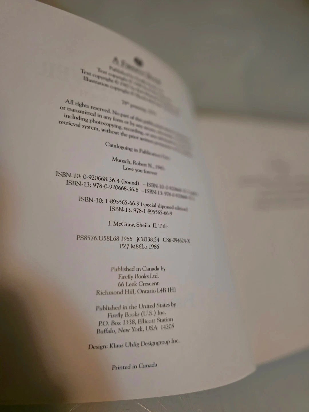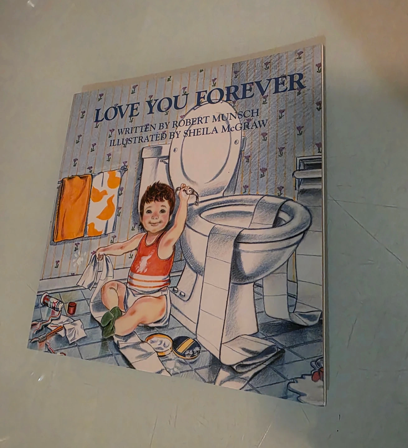 The classic children's book, Love You Forever by Robert Munsch, illustrated by Sheila McGraw. It's a heartwarming story that both children and adults will enjoy over and over again.