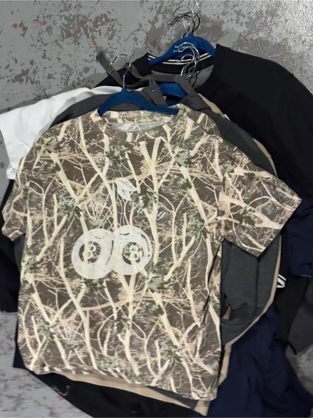 Here's a cool camouflage t-shirt with a unique 8 ball design! It's in great shape and ready for a new wardrobe. A fun and stylish piece to add to your collection