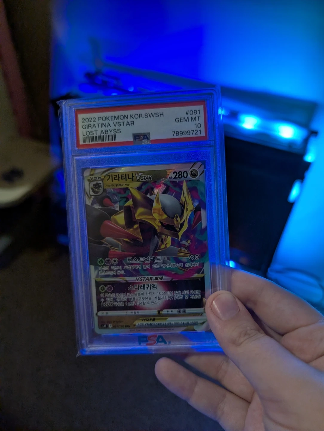 Selling a Giratina VSTAR Korean Pokemon card, graded Gem Mint 10 by PSA! It's from the 2022 Pokemon KOR.SWSH Lost Abyss set and has the card number 081. A great addition to any collection!