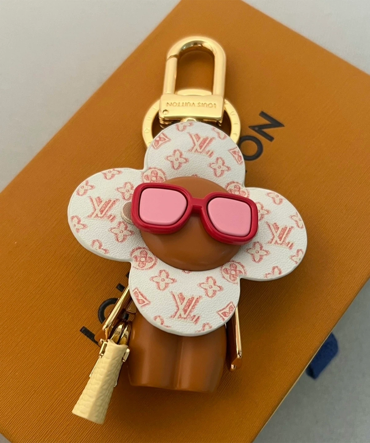 This is a Louis Vuitton Vivienne bag charm and key holder. It's in great condition. This accessory adds a touch of luxury to any bag or set of keys!
