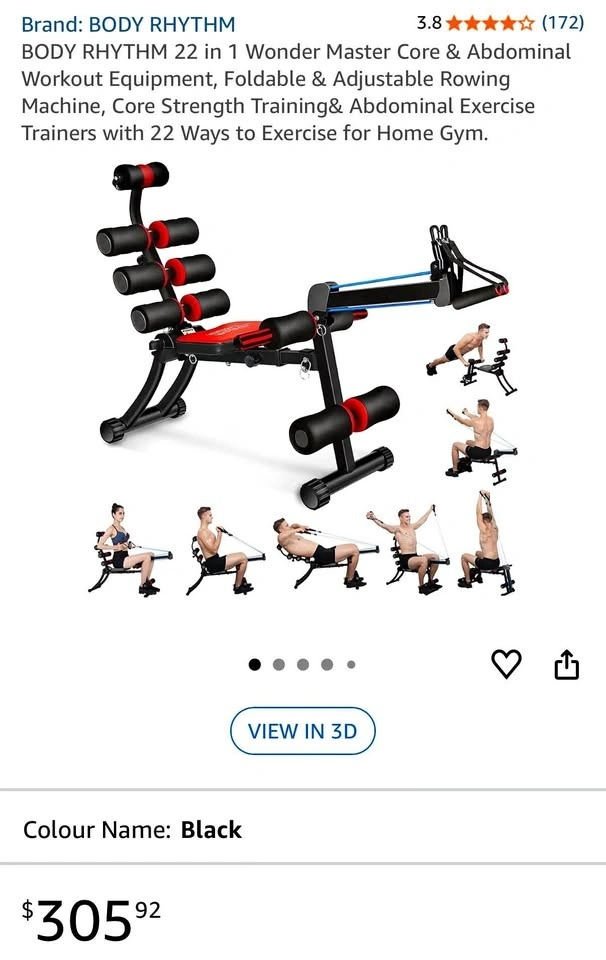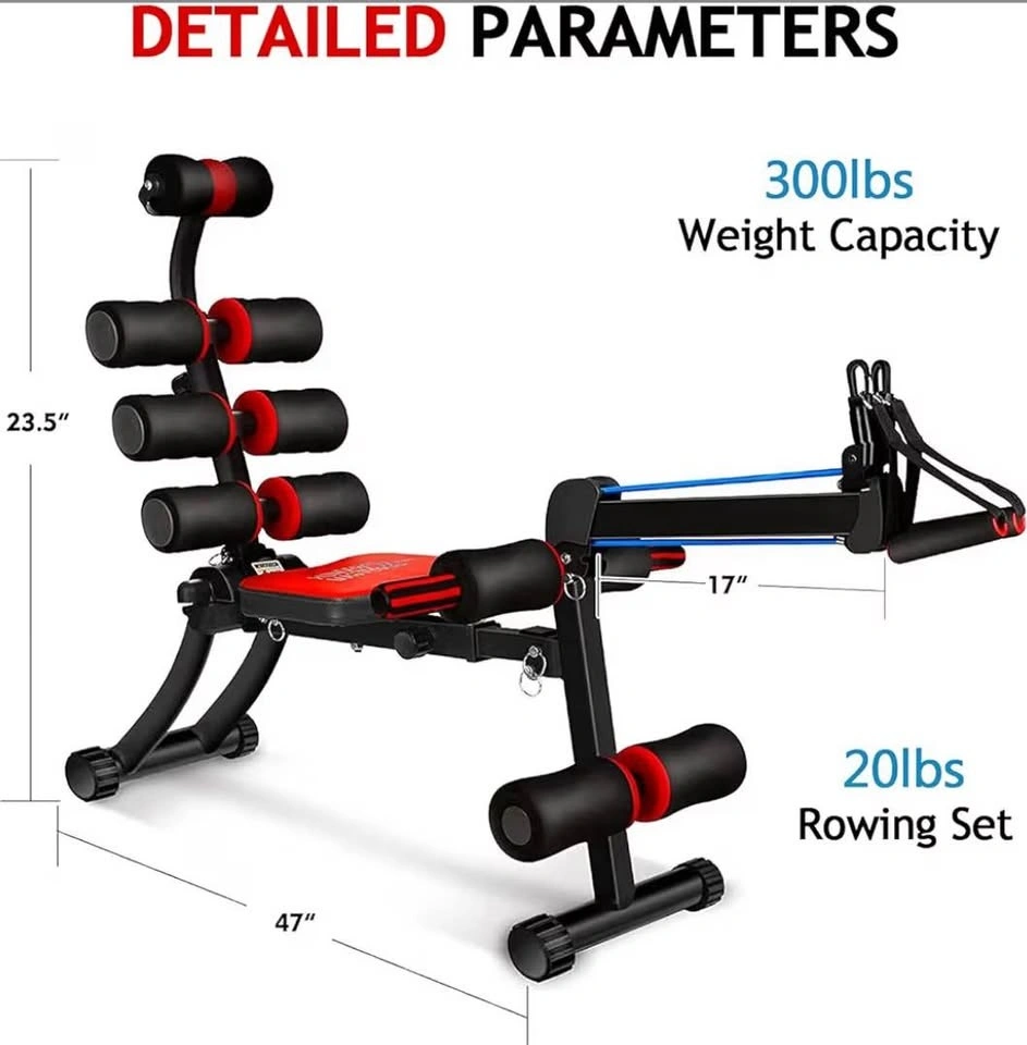 This ab/core fitness machine features 22 different training ways to keep you in shape. Arm rows, Bicep Curls, Triceps extension, Sit-up,Push- up, Abdominal crunch, Twisting, Works all the major muscle groups.