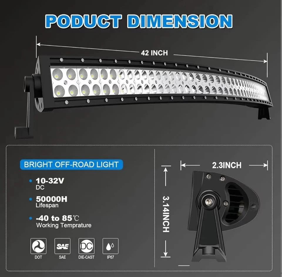 Adjustable mount bracket: The light bar can be adjusted to about 45 degrees.