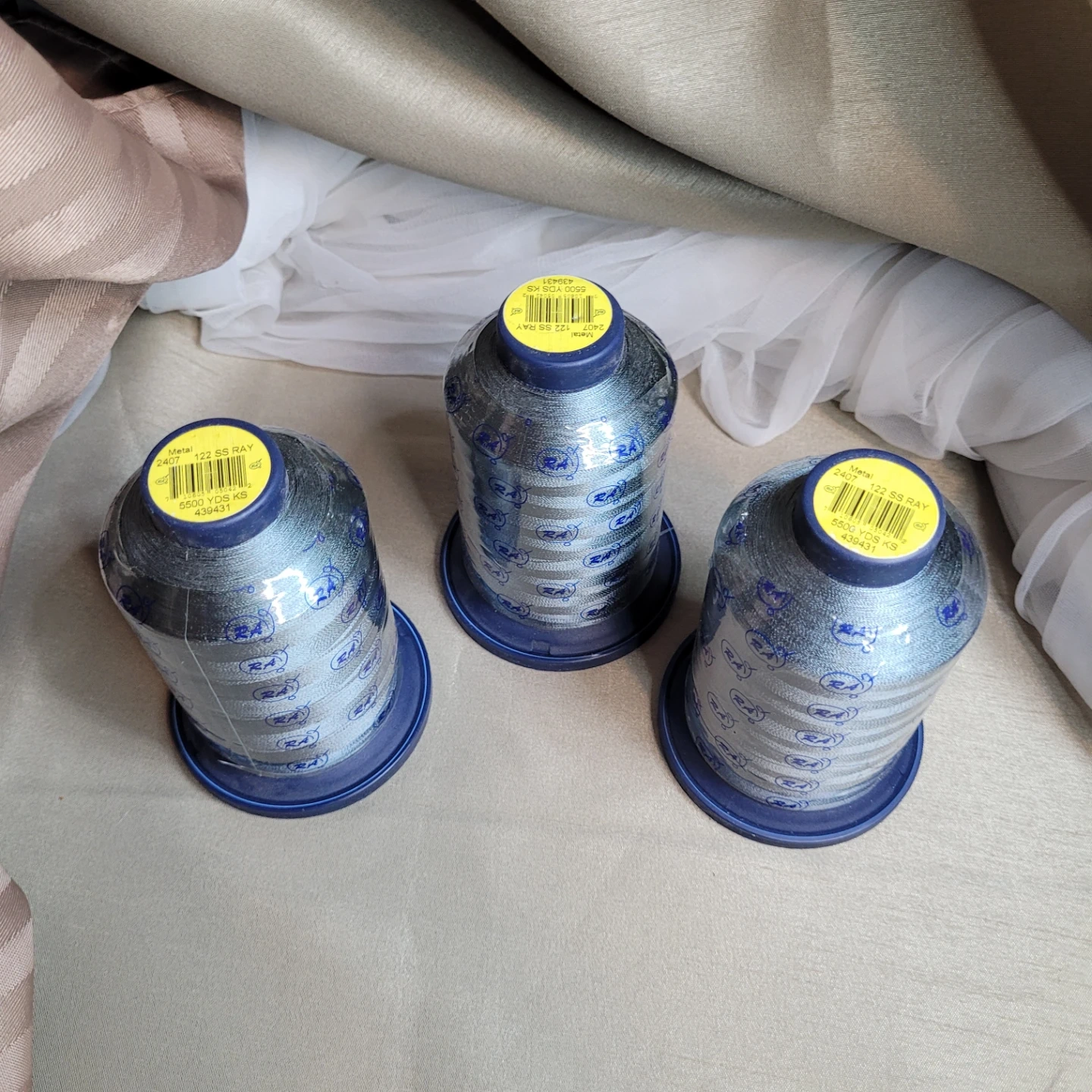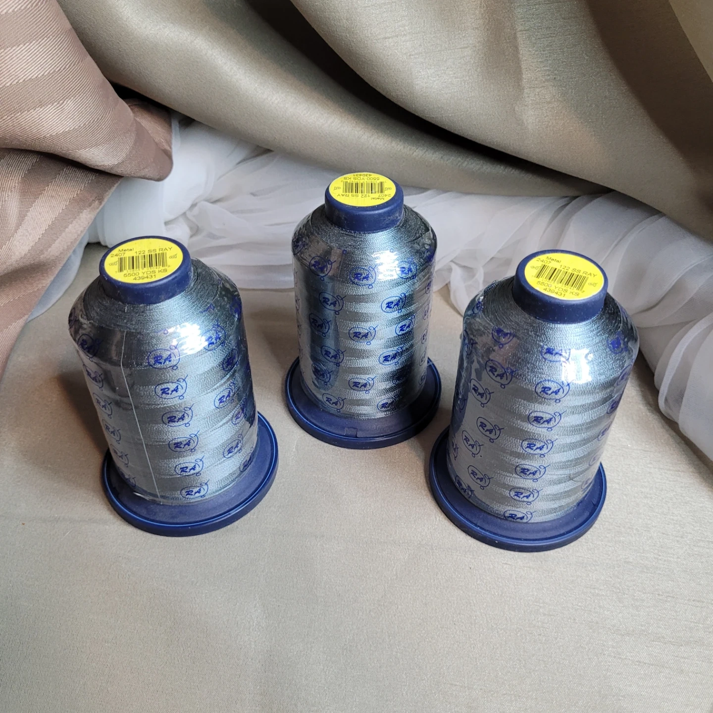 RA Rayon Embroidery Thread 5500 Yards each Grey 3 SPOOLS