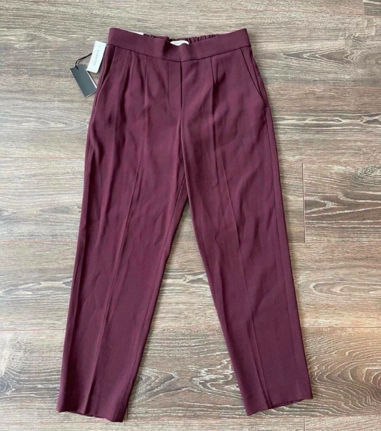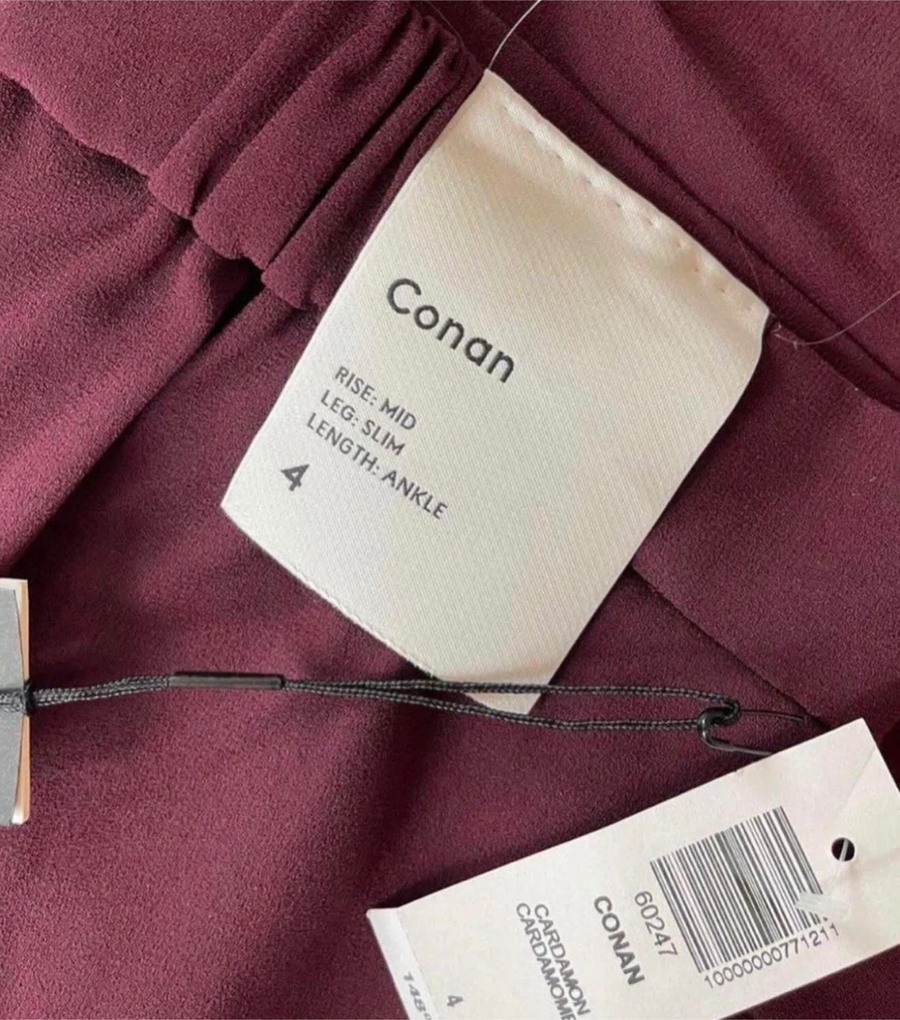 These Conan pants are a lovely burgundy colour and are in great condition! They are a size 4 with a mid rise and slim leg. The length is ankle length. Perfect for dressing up or down!