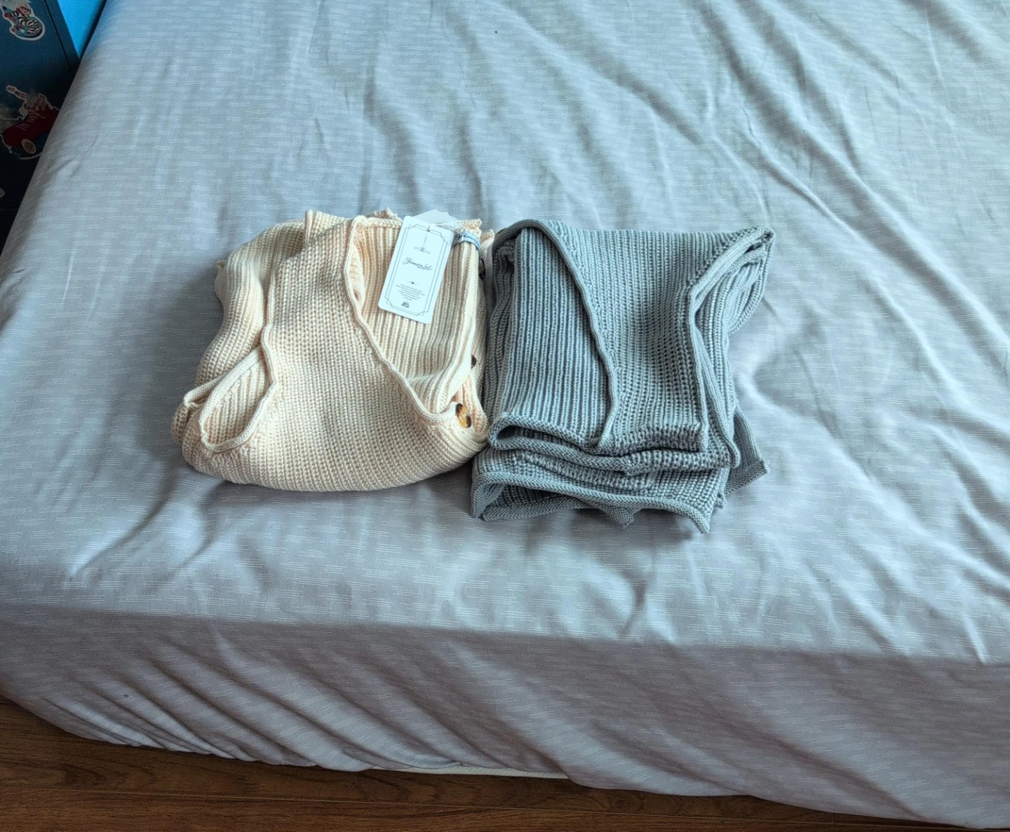 I have two adorable knit rompers from Jamie Kay. One is a lovely cream colour, and the other is a soft grey. Both are size 0, perfect for a gift